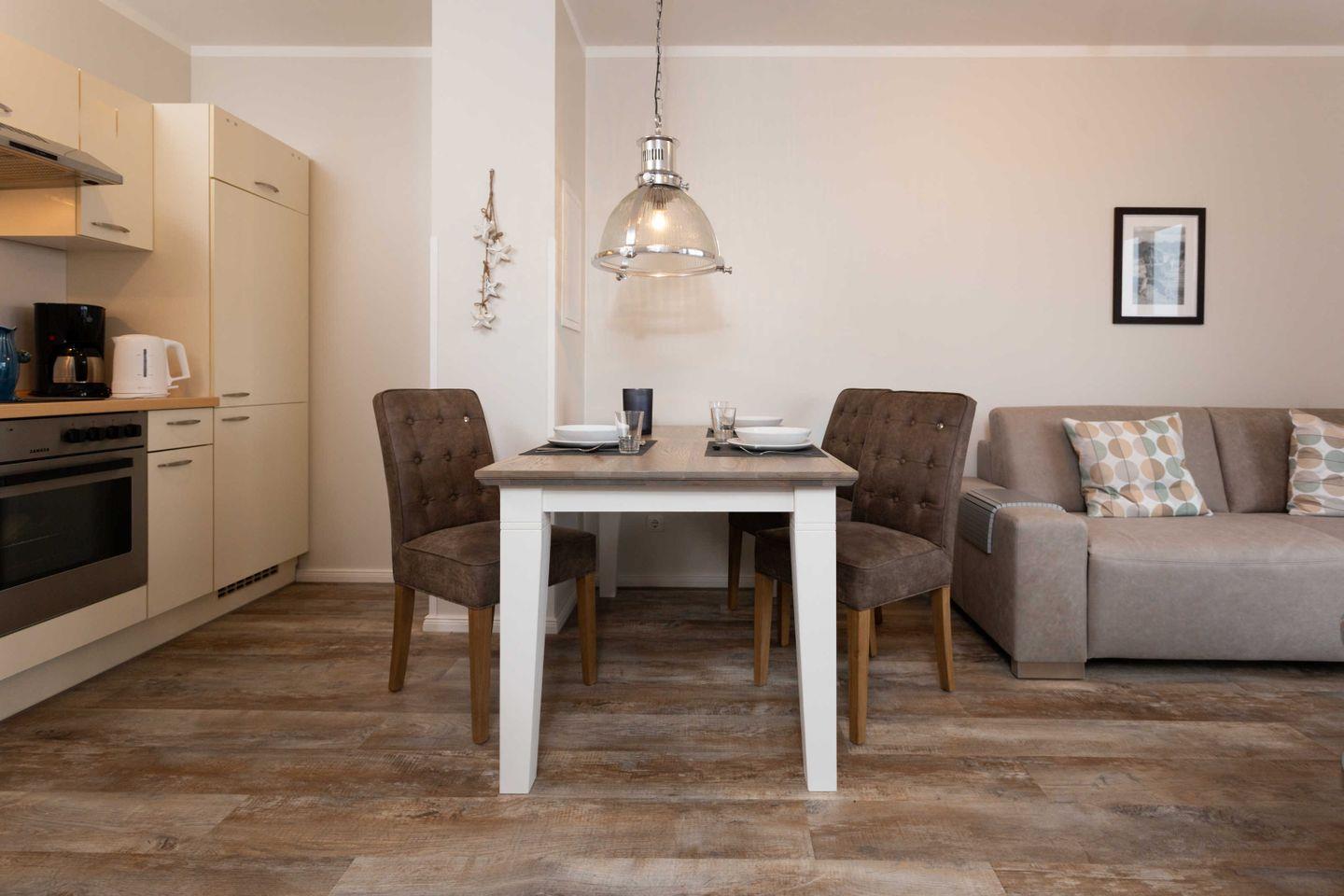Ferienwohnung mit Balkon für 2-4 Personen mit hochwertiger Möblierung im 3. OG mit 1 Schlafzimmer (2 Zimmer / 50²):