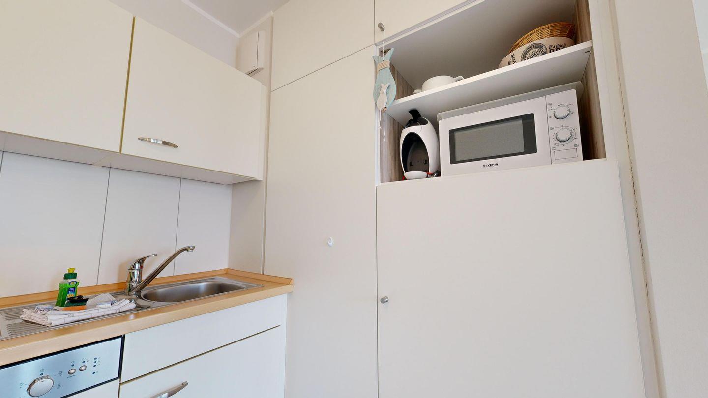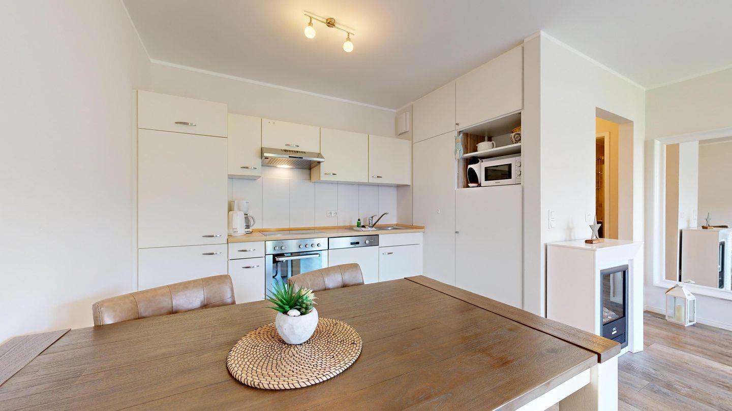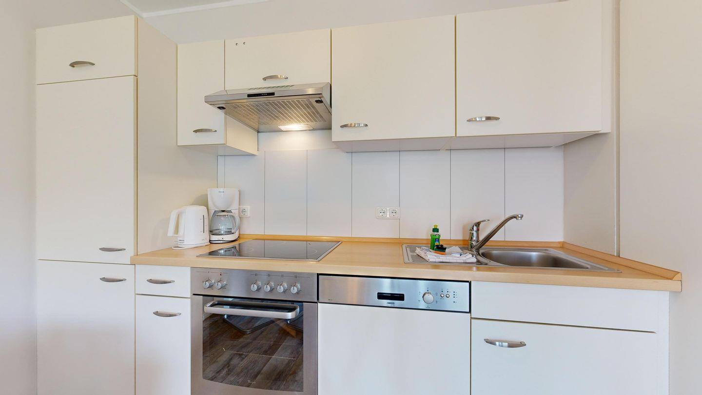 * Küche mit Ceranfeld, Kühlschrank mit Gefrierfach, Backofen, Mikrowelle, Spülmaschine, Toaster, Wasserkocher, Kaffeemaschine