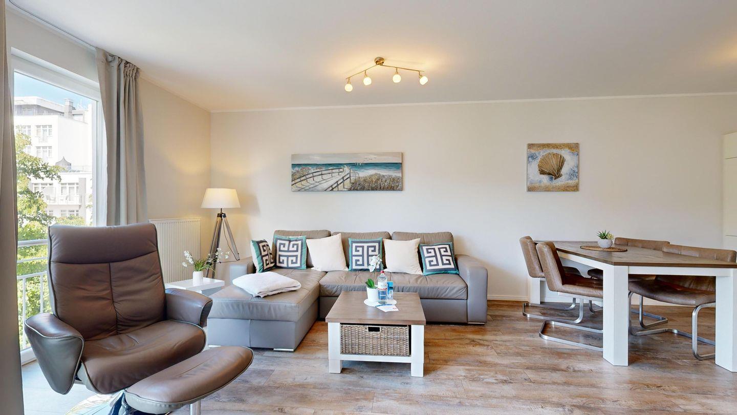 Moderne Ferienwohnung in Binz mit Sauna, Fitnessraum, Balkon und nur 50 m zum Strand.