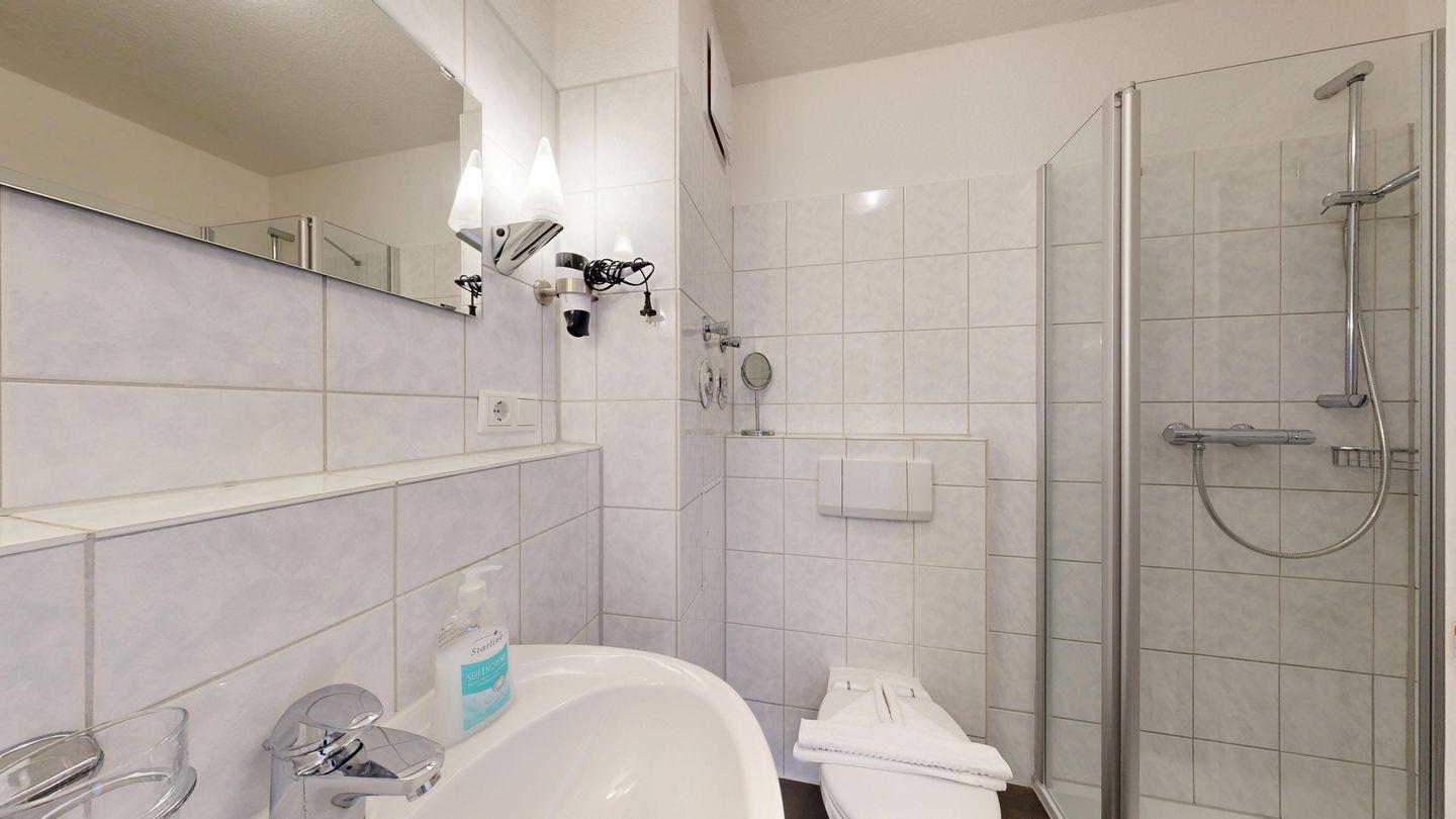 * Dusche (Tiefeinsteiger)/ WC, Haartrockner