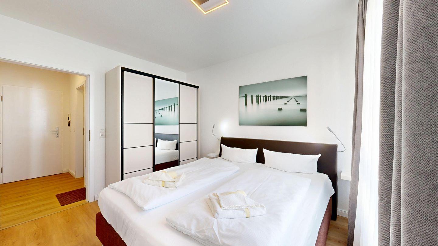 * 1 Schlafzimmer mit einem Boxspringbett (Doppelbett)