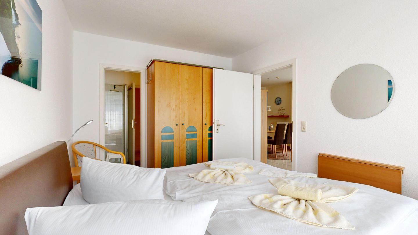 * 1 Schlafzimmer mit einem Boxspringbett (Doppelbett) und TV