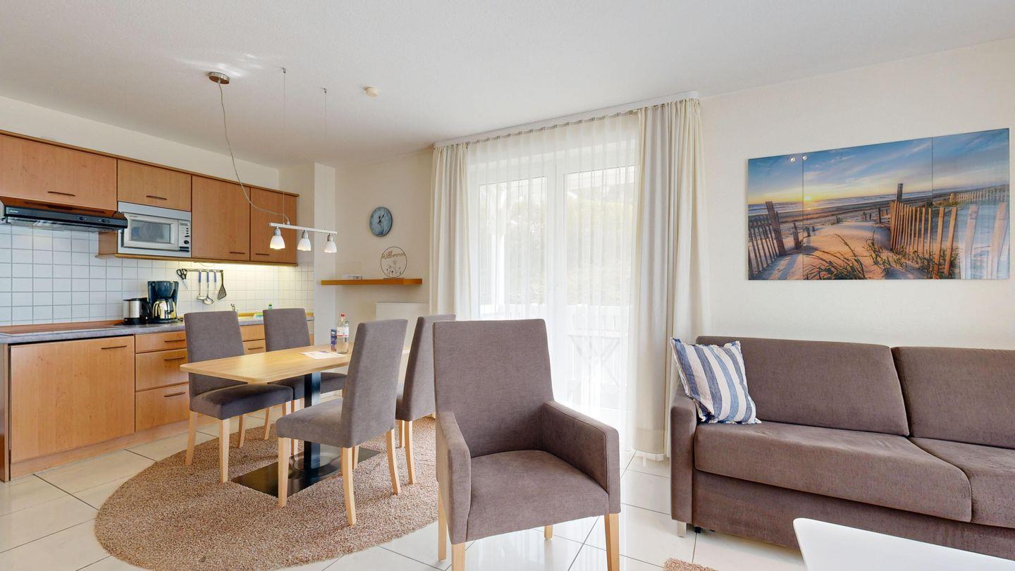 Ausstattung der Komfort-Ferienwohnung im EG, Typ B (2 Zimmer / 45 m²)
