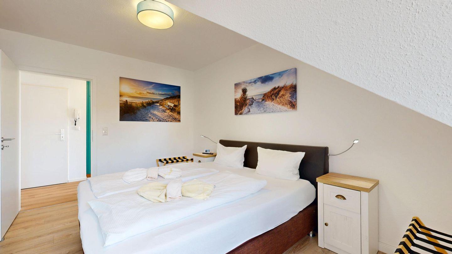 * 1 Schlafzimmer mit einem Boxspringbett (Doppelbett) und TV