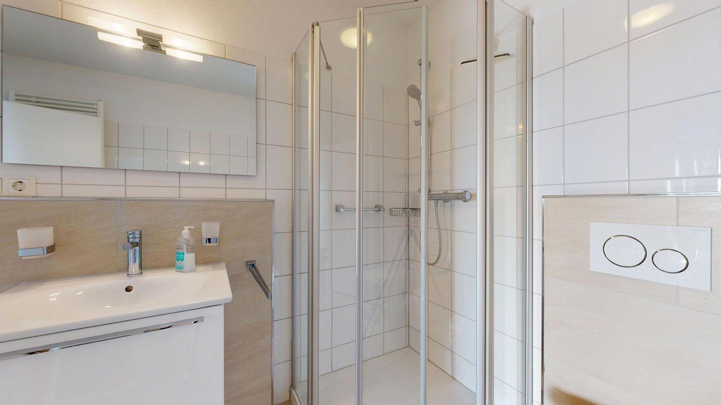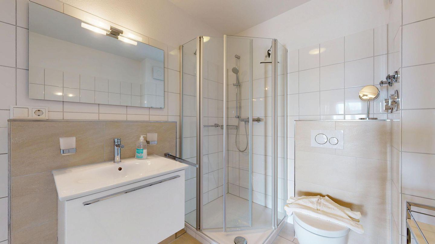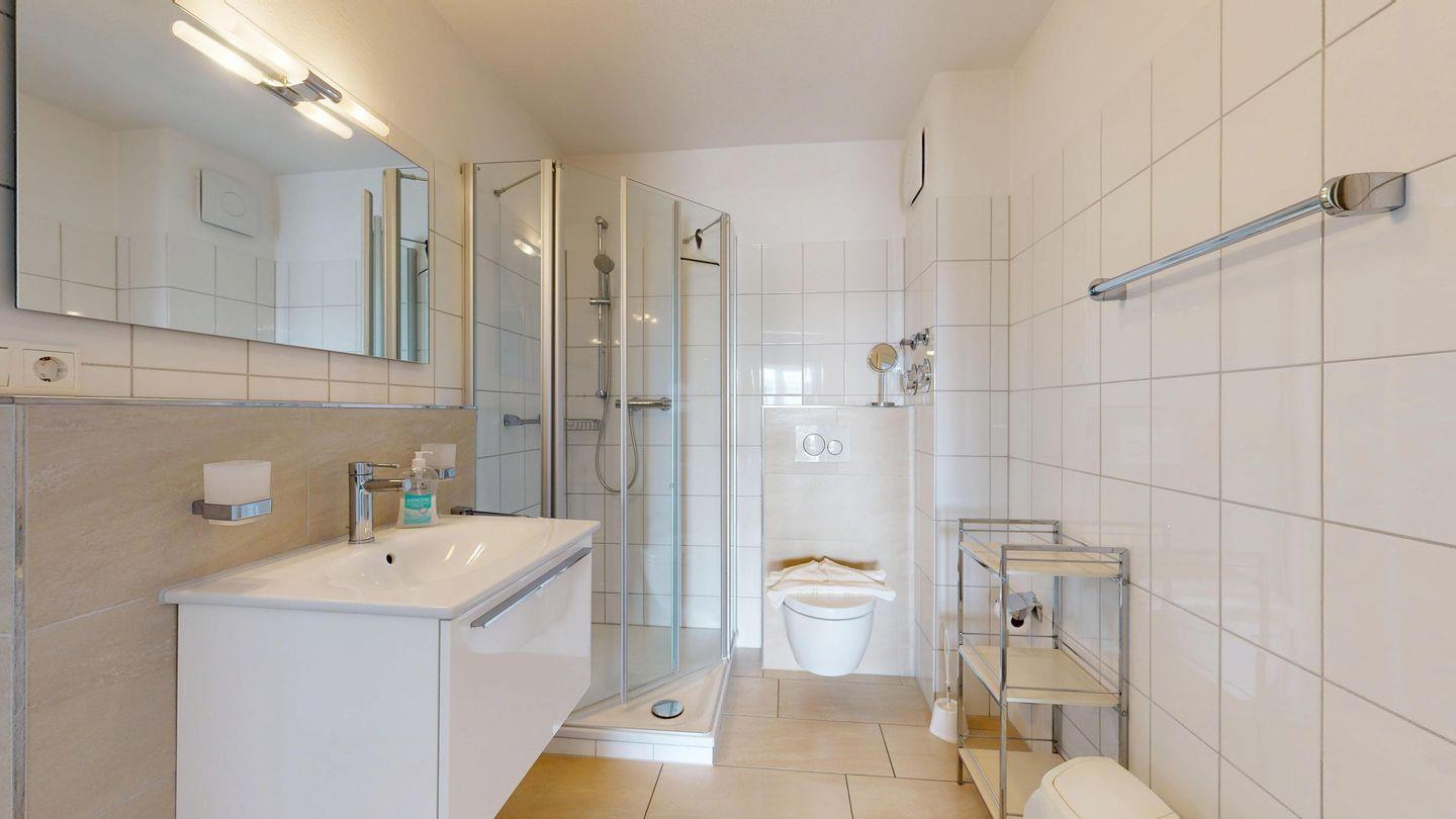 * Dusche (Tiefeinsteiger), WC, Haartrockner
