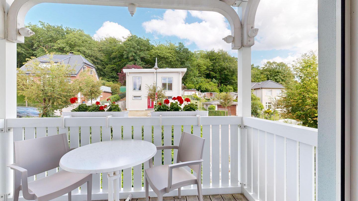 * möblierter Balkon