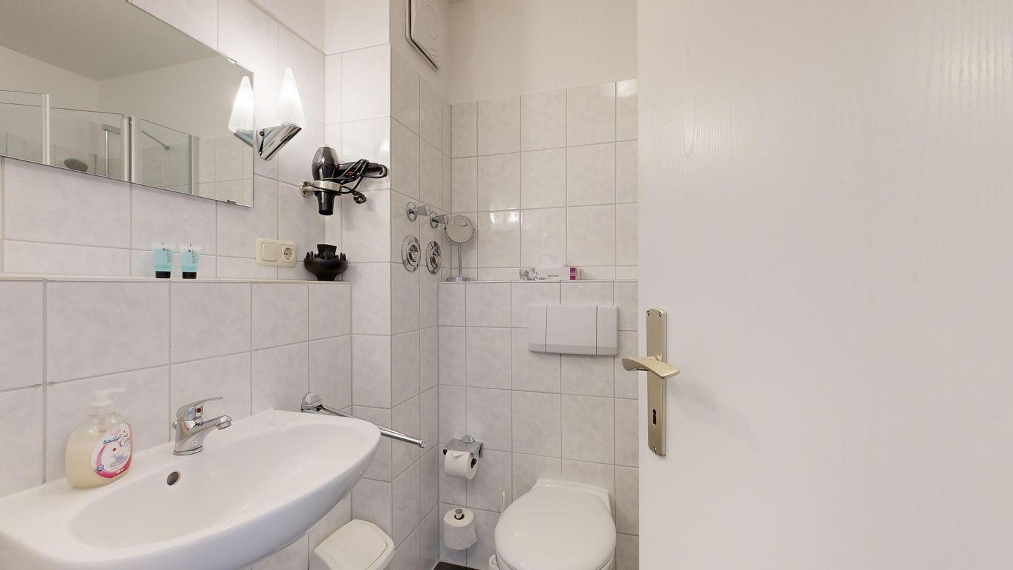 * Dusche (Tiefeinsteiger), WC, Haartrockner