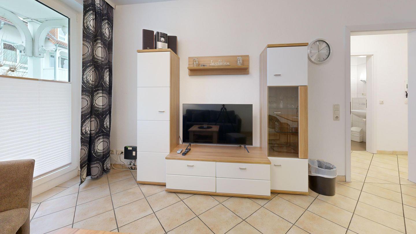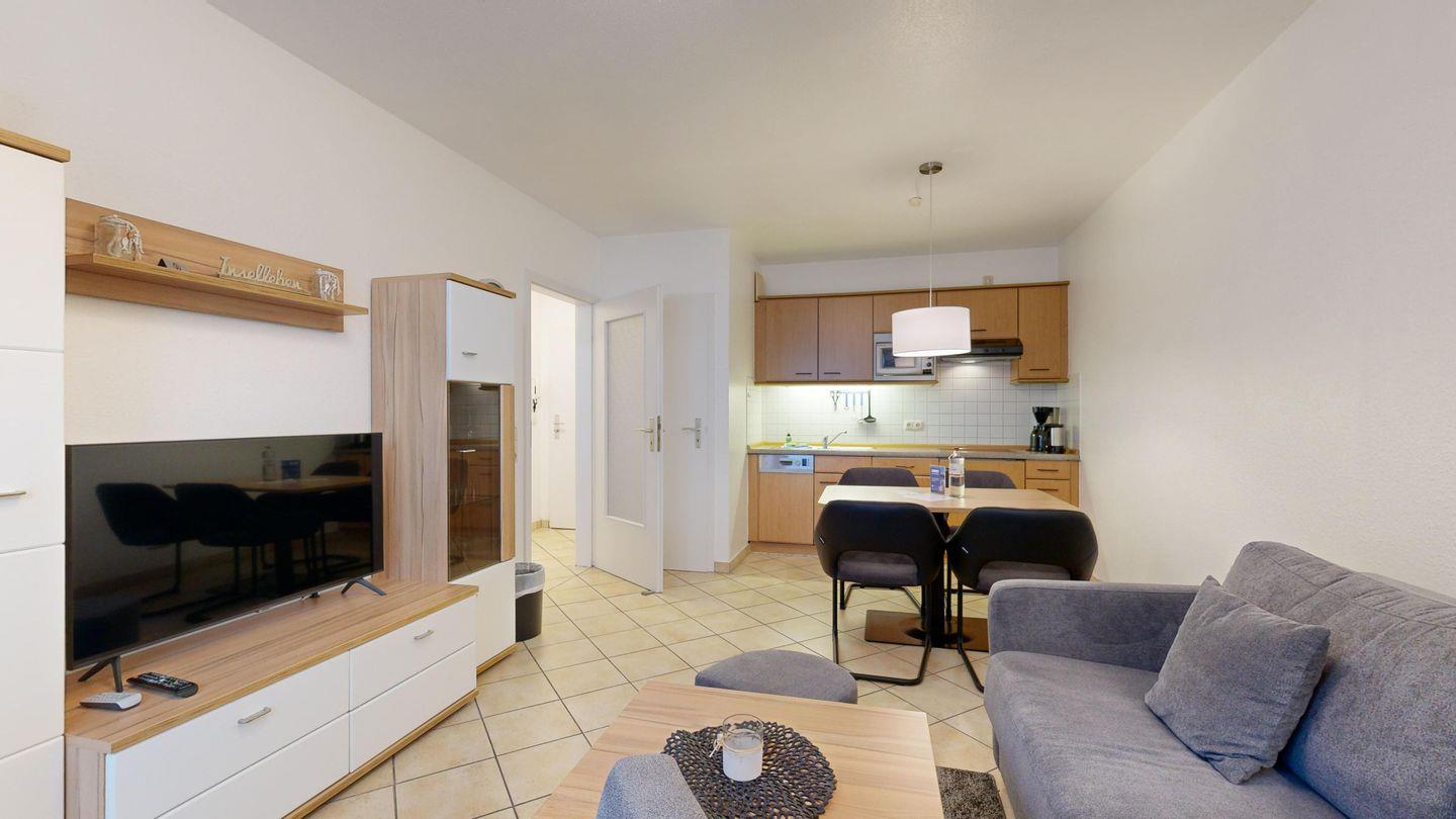 * Wohnzimmer: Couchgarnitur (Schlafgelegenheit für 2 Personen), Kabel-TV, Stereoanlage, Internetanschluss (WLAN), Esstisch