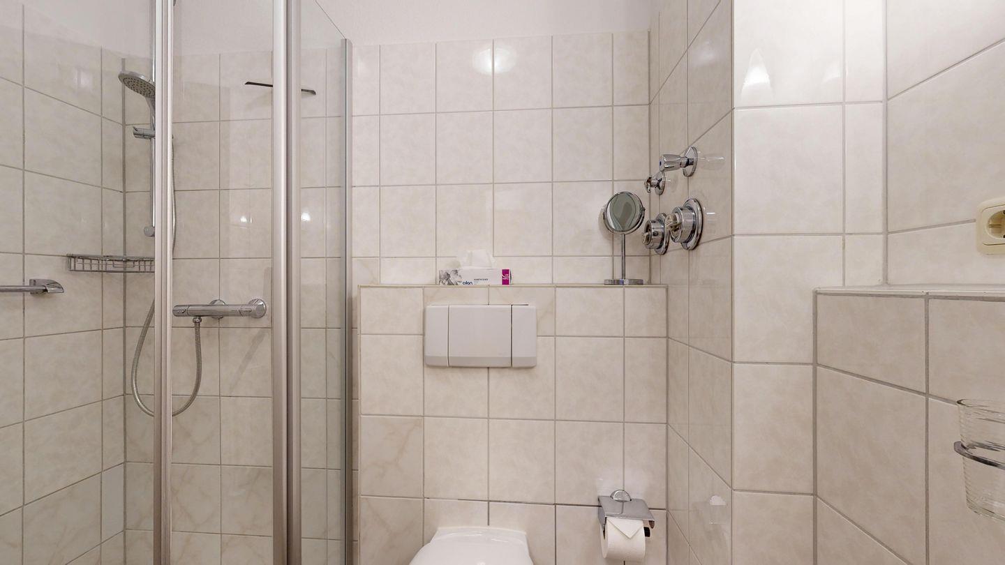 * Dusche (Tiefeinsteiger), WC, Haartrockner