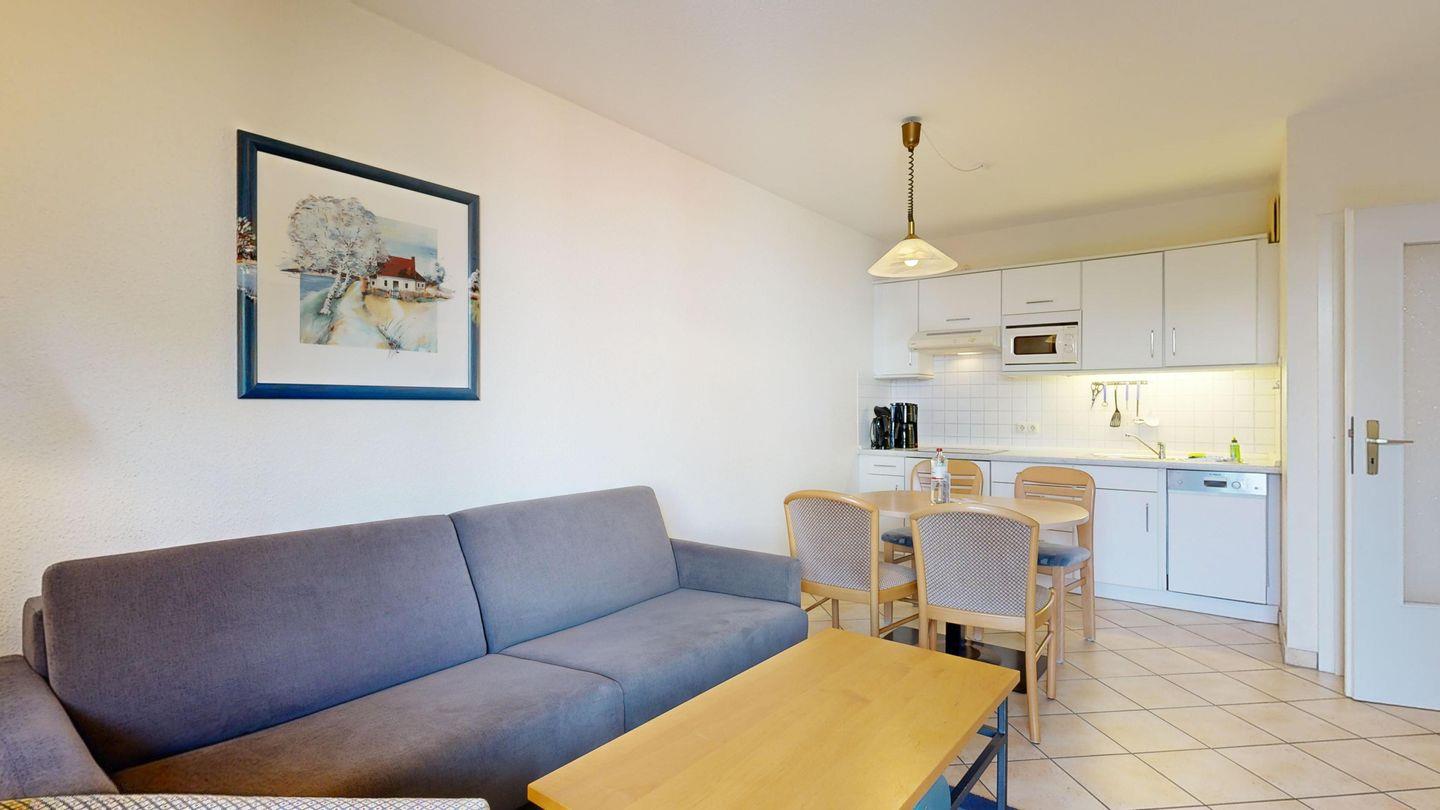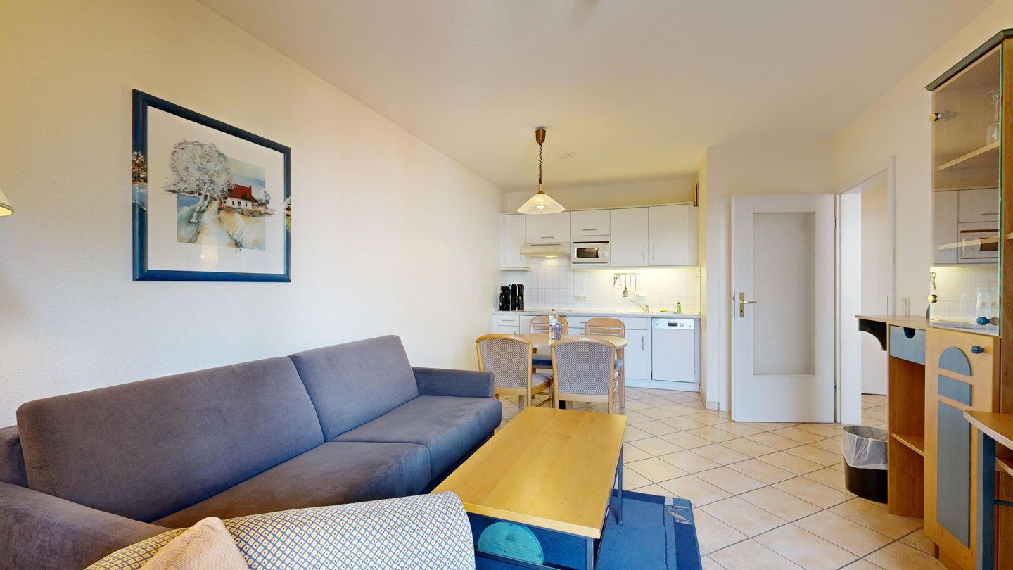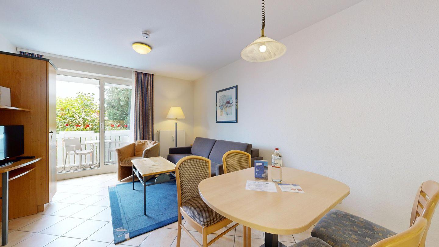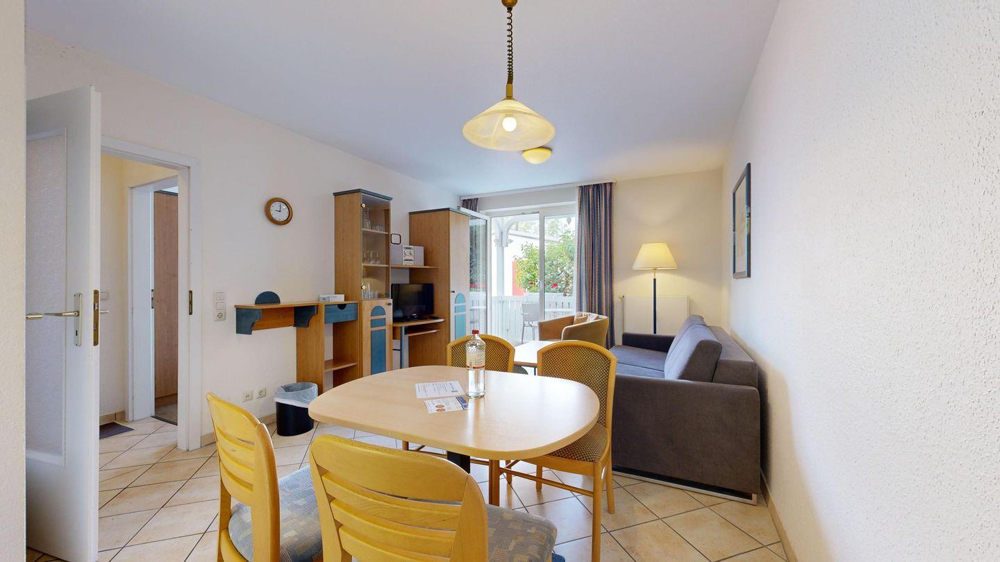 * Wohnzimmer: Couchgarnitur (Schlafgelegenheit für 2 Personen), Kabel-TV, Stereoanlage, Internetanschluss (WLAN), Esstisch