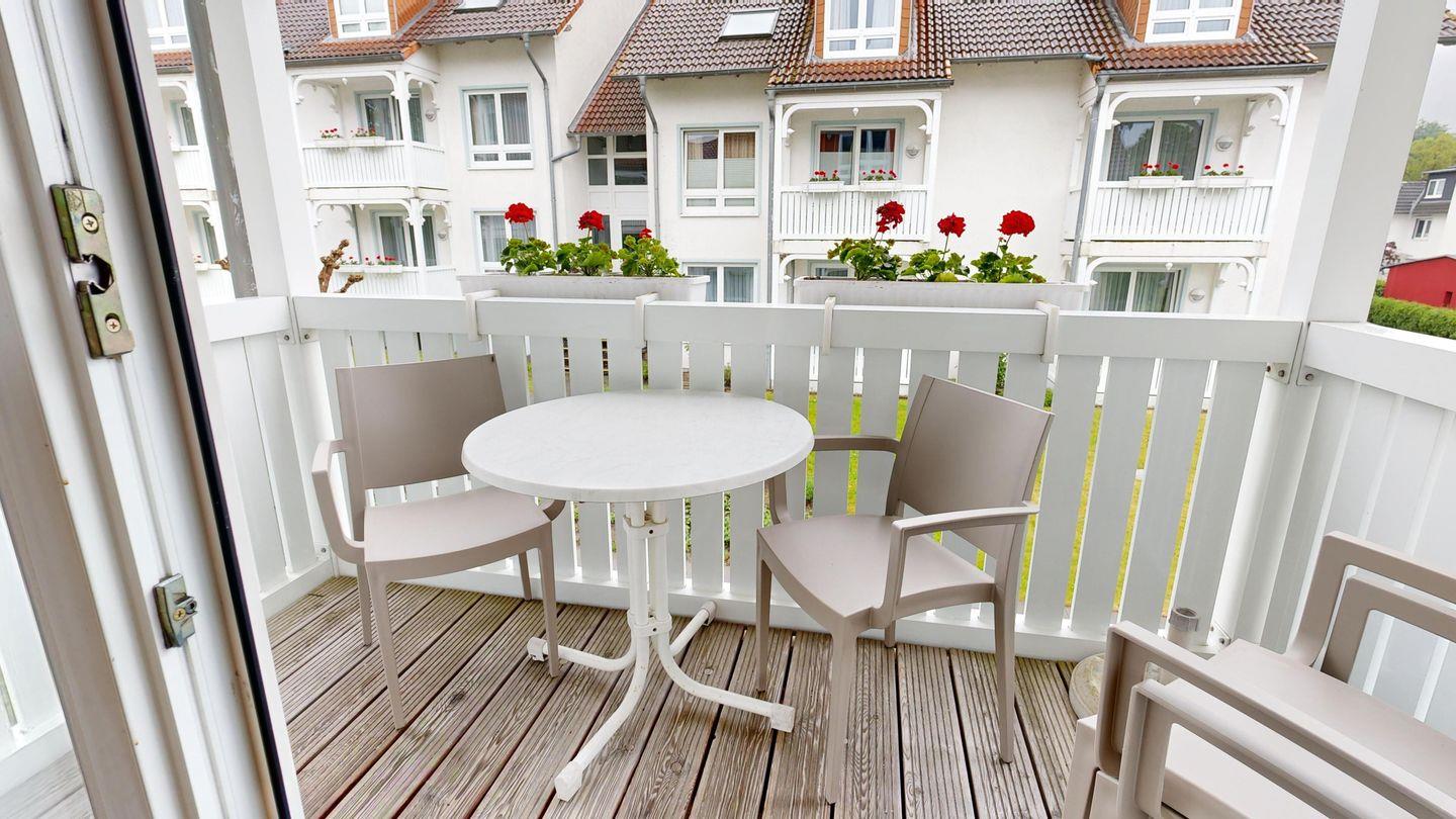 * möblierter Balkon