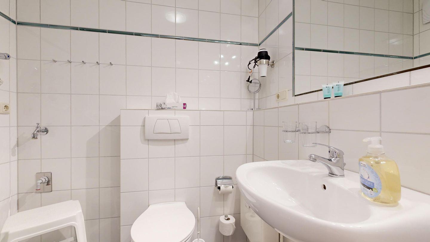 * Dusche (Tiefeinsteiger), WC, Haartrockner