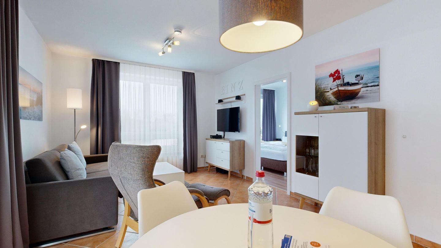 Ruhiges Appartement in Binzer Sterne mit Balkon, WLAN, Sauna und Nähe zum Granitzwald für entspannte Tage abseits des Trubels.