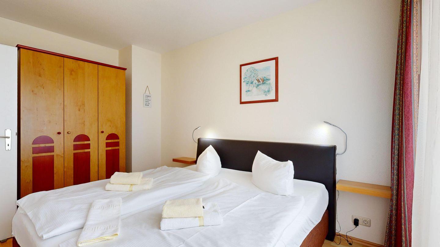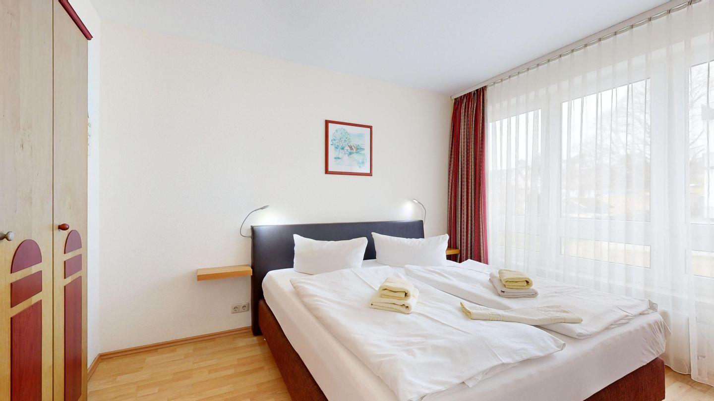 * 1 Schlafzimmer mit einem Boxspringbett (Doppelbett) und TV