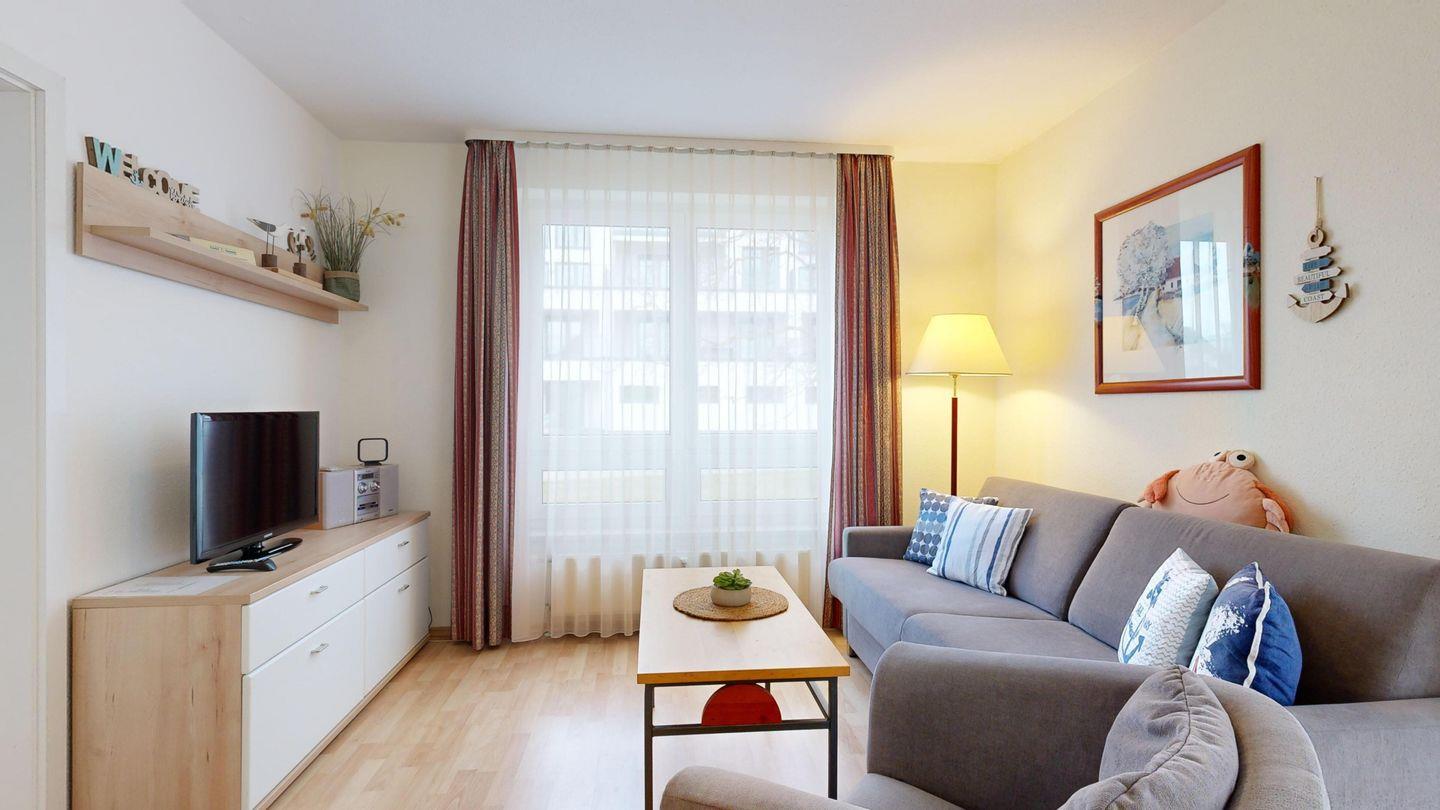 * Wohnzimmer: Couchgarnitur (Schlafgelegenheit für 2 Personen), Kabel-TV, Stereoanlage, Internetanschluss-WLAN, Esstisch