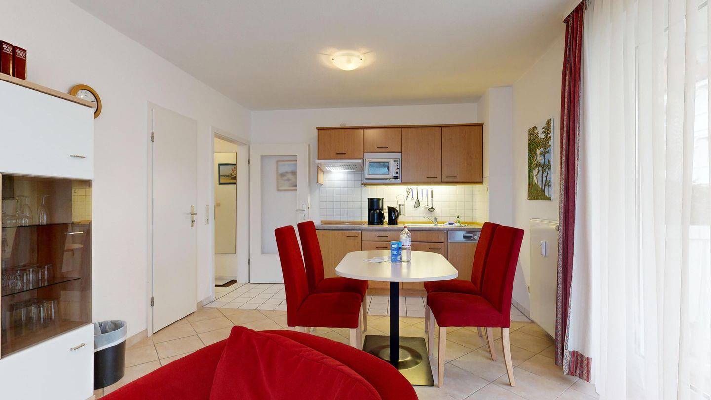 Ausstattung der Komfort-Ferienwohnung im EG, Typ B (2 Zimmer / 45 m²)