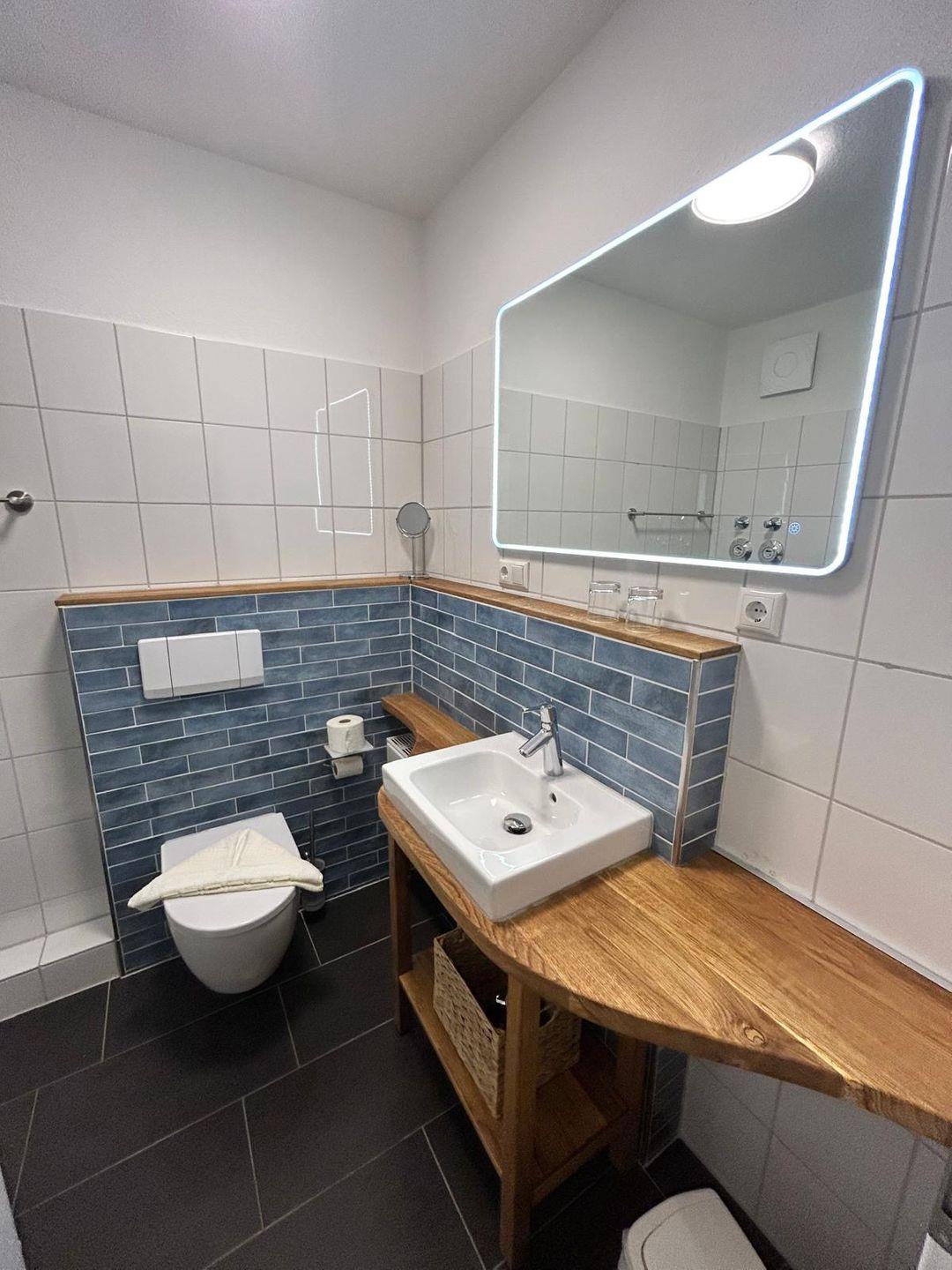 * Dusche (Tiefeinsteiger), WC, Haartrockner