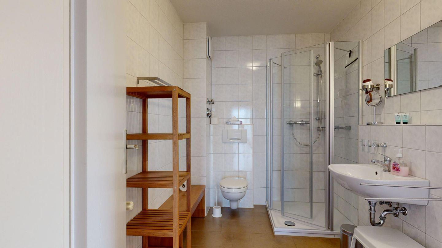 * Dusche (Tiefeinsteiger), WC, Haartrockner
