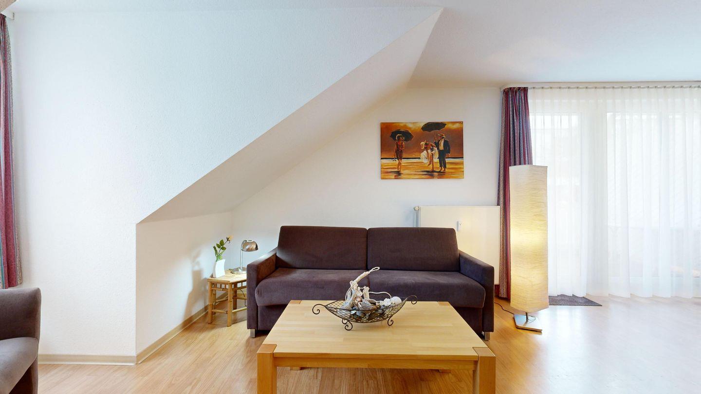 * Wohnzimmer: Couchgarnitur (Schlafgelegenheit für 2 Personen), Kabel-TV, Stereoanlage, Internetanschluss (WLAN), Esstisch