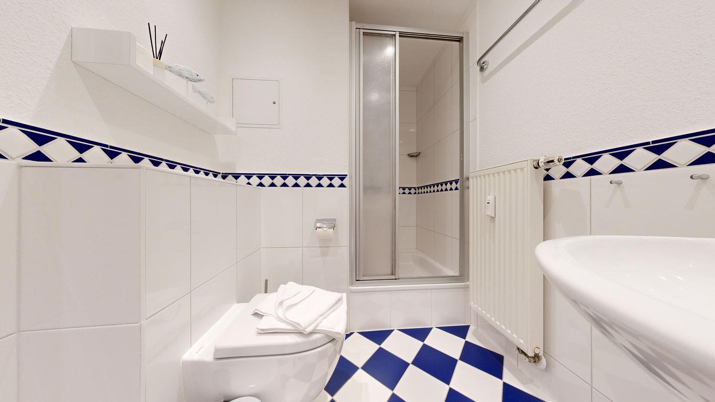 * 1 Badezimmer mit Dusche, WC und Föhn