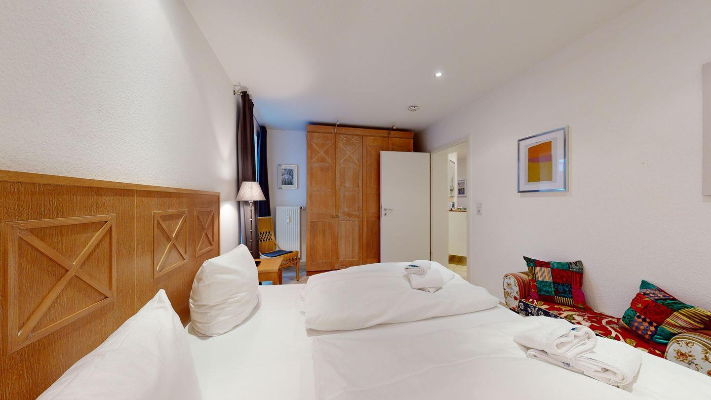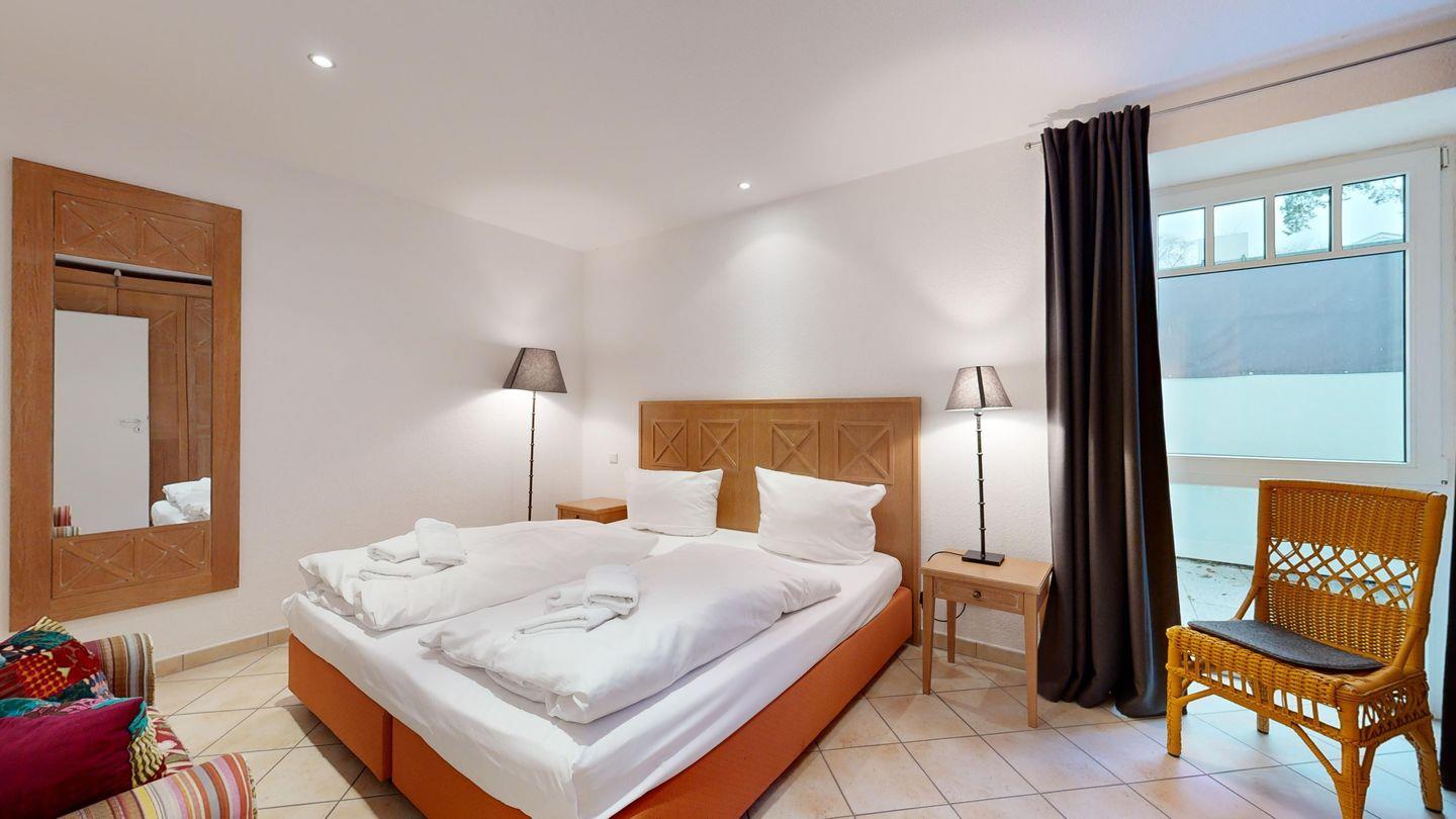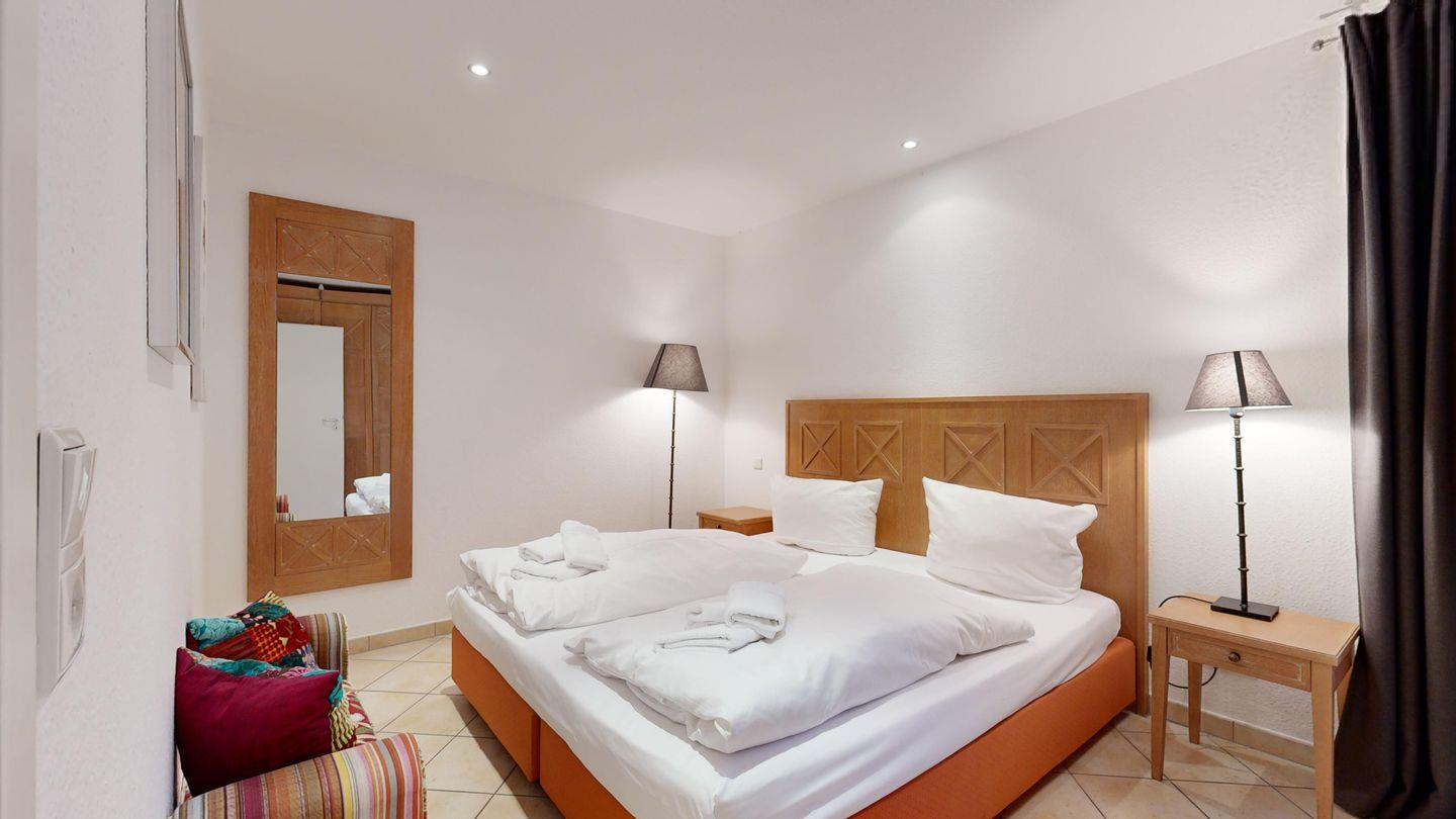 * 1 Schlafzimmer mit einem Doppelbett und großem Kleiderschrank