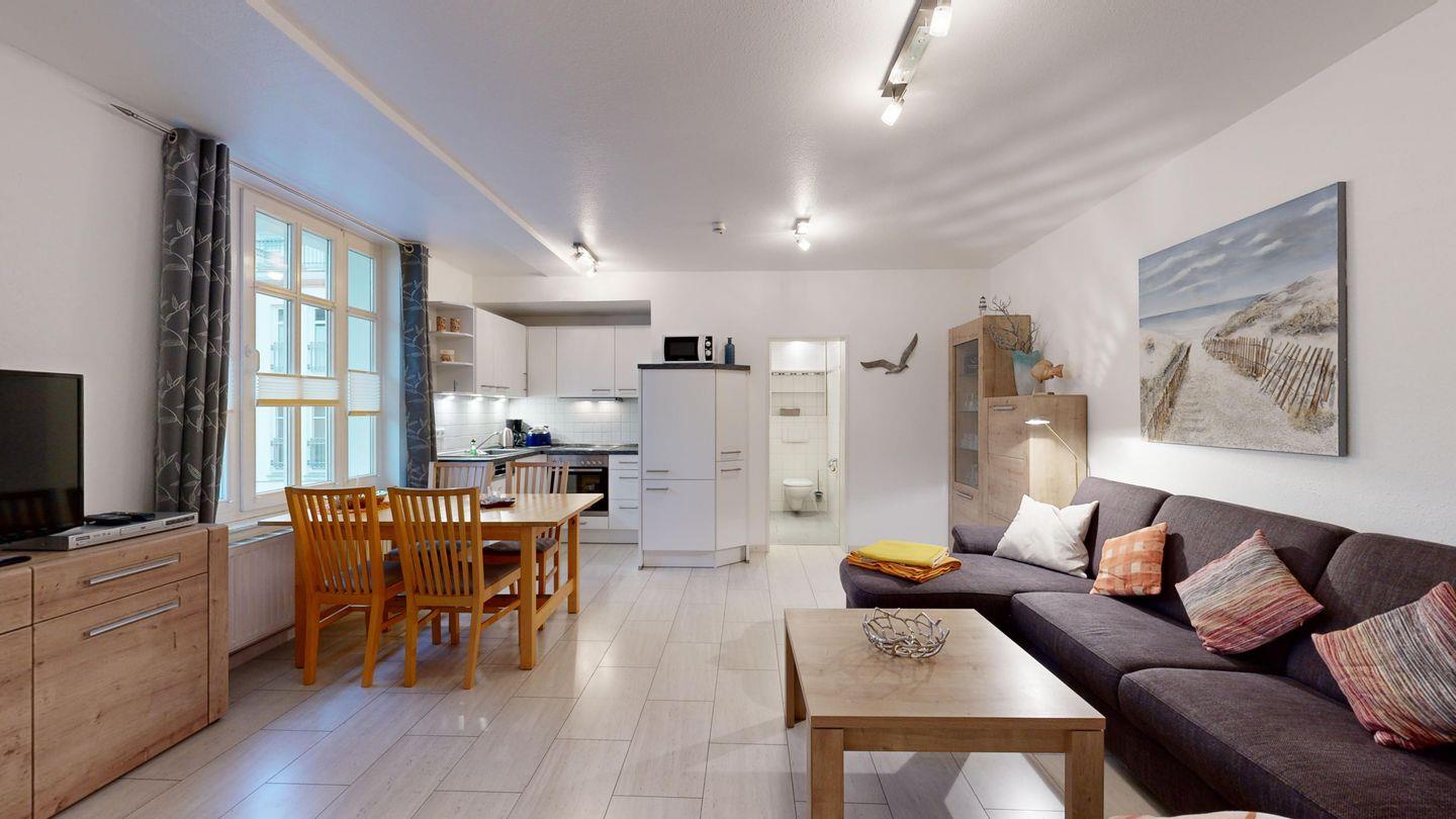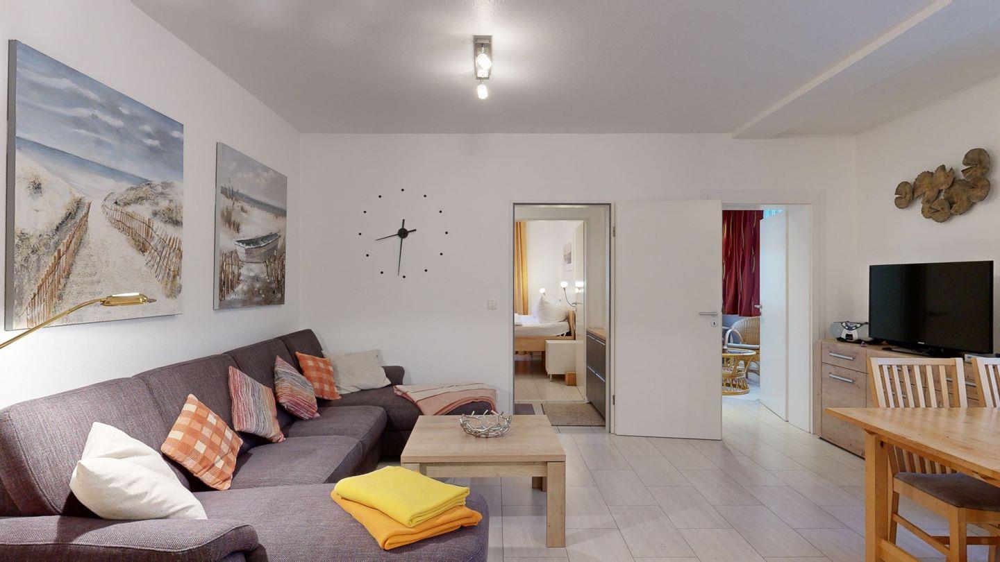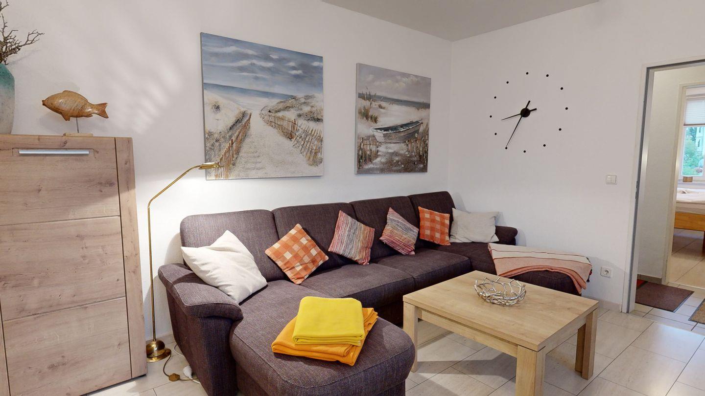 * Wohn-/Esszimmer: Große Couch, Kabel-TV, WLAN, Essbereich für 4 Personen
