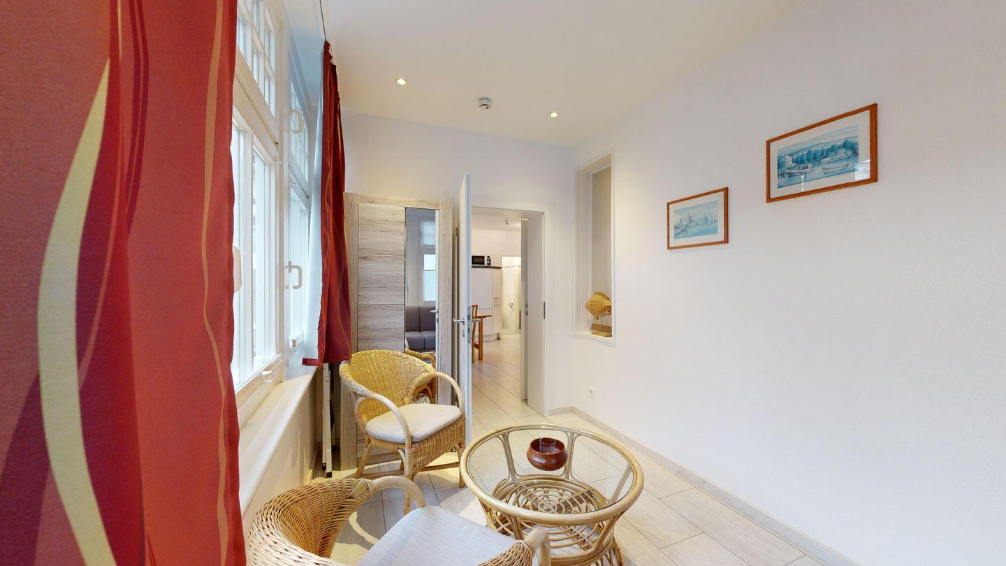 * Schöner, separater Erker (durch eine Tür abgetrennt) mit großen Fenstern, Sitzgelegenheit, Schlafcouch (Maße: 160 x 200, Schlafgelegenheit für 1-2 Pers.)