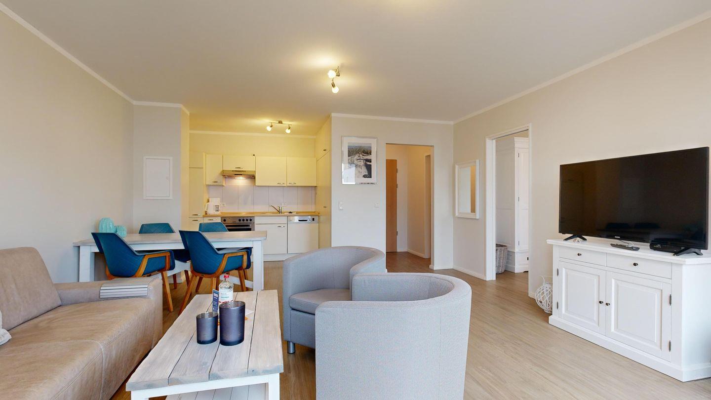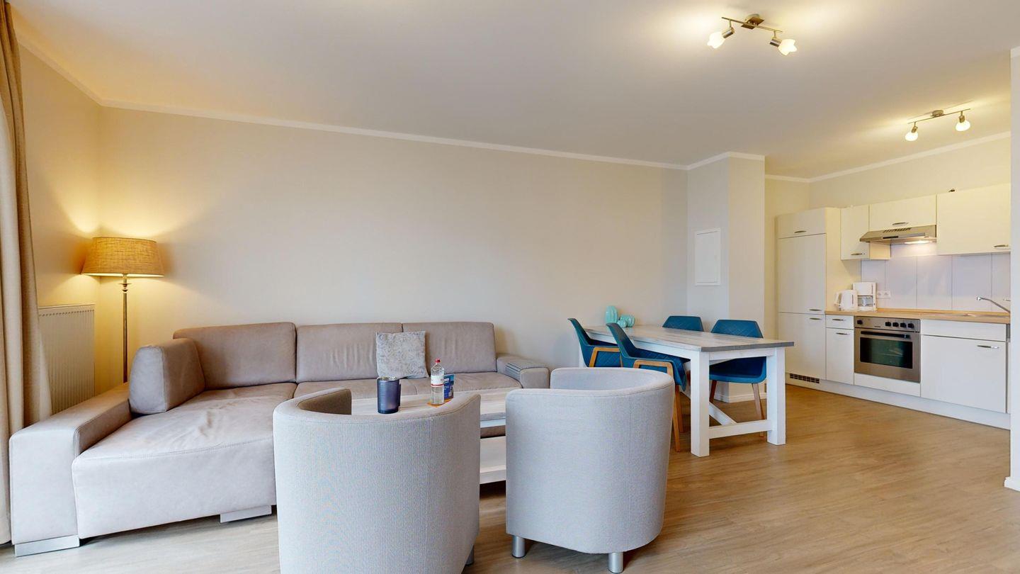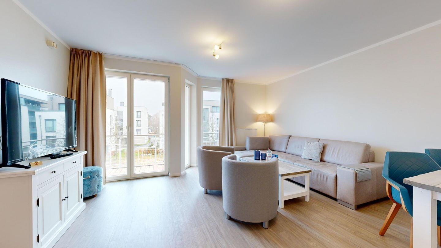 Moderne Ferienwohnung in Binz nahe Strand mit Sauna, Fitnessraum, Fahrstuhl und Balkon für erholsamen Urlaub.