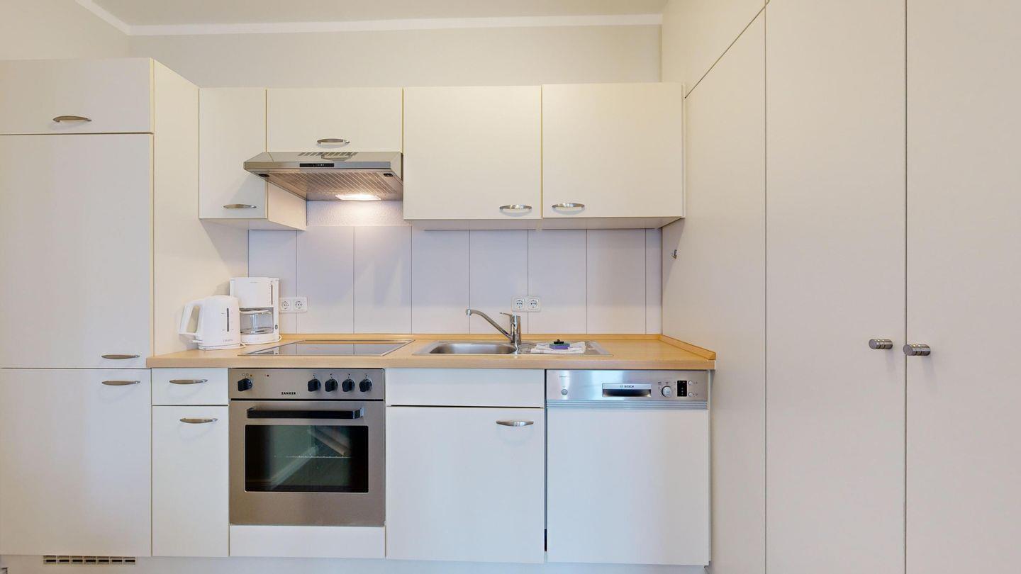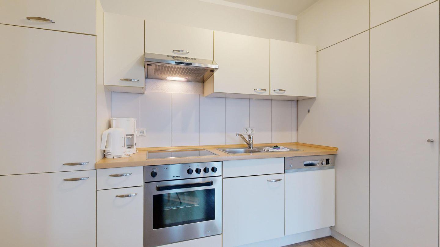 * Küche mit Ceranfeld, Kühlschrank mit Gefrierfach, Backofen, Spülmaschine, Toaster, Wasserkocher, Kaffeemaschine
