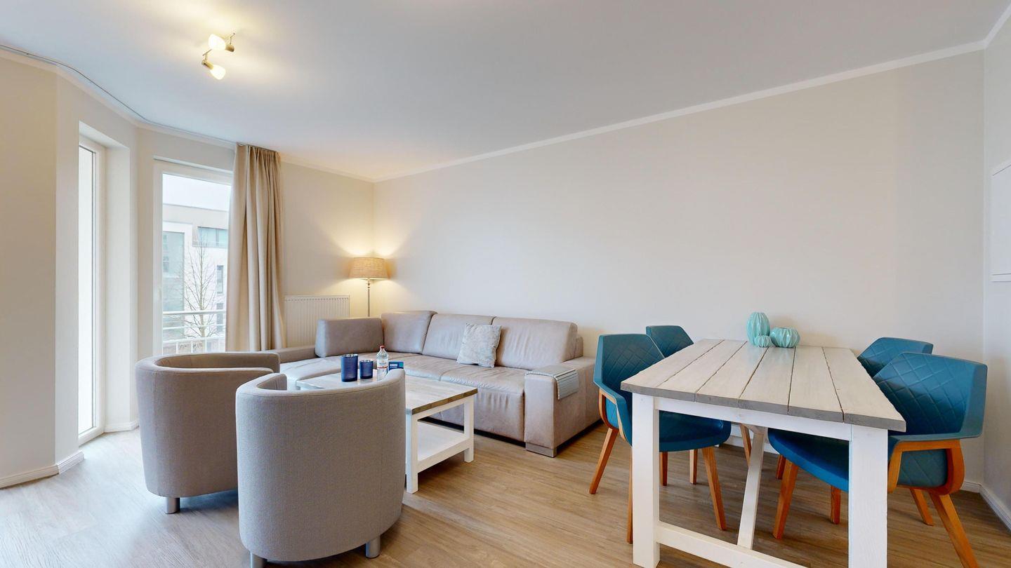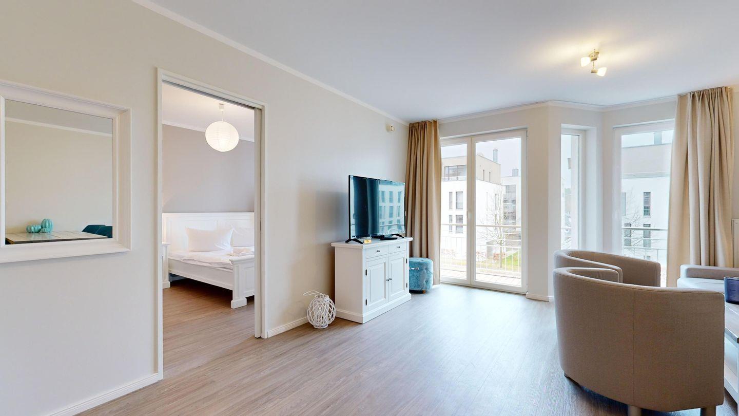 Ferienwohnung mit hochwertiger Möblierung und Balkon für 2-4 Personen im 1. OG mit 1 Schlafzimmer (2 Zimmer / 57 m²):