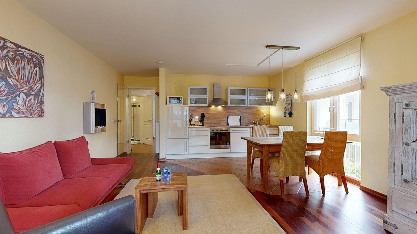 Für alle, die Meer und Natur gleichermaßen lieben: Diese stilvoll gestaltete Wohnung mit zwei Schlafzimmern liegt nur wenige Schritte vom Strand entfernt und schenkt Ihnen einen traumhaften Blick in den grünen Kurpark. Der eigene Strandkorb lädt zu entspannten Stunden am Meer ein. Einen entspannten Abend können Sie in der hauseigenen Sauna verbringen.