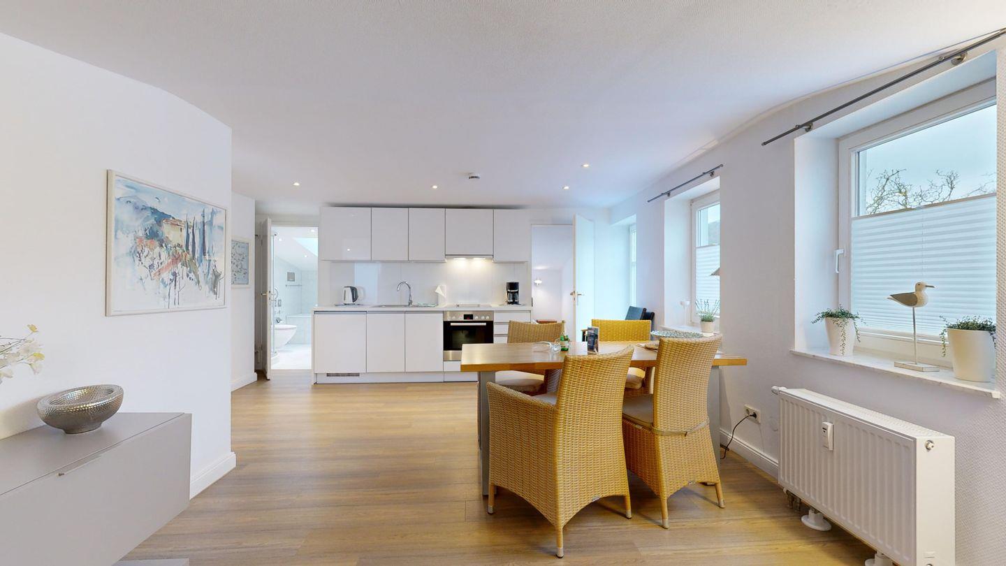 Genießen Sie unvergessliche Stunden in direkter Strandlage – auf Ihrem sonnigen Südbalkon können Sie den Tag mit einer frischen Brise beginnen. Eine stilvolle Küchenzeile lädt zum gemeinsamen Kochen ein, während die moderne Einrichtung zum Entspannen einlädt. Ihren eigenen Strandkorb erwartet Sie gleich am Meer – Urlaubsfeeling pur!