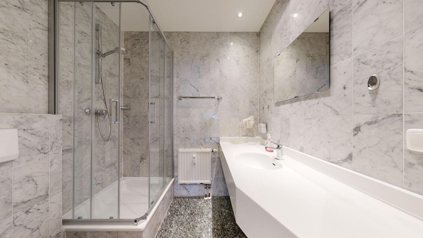 * 1 Badezimmer mit Dusche, WC und Föhn