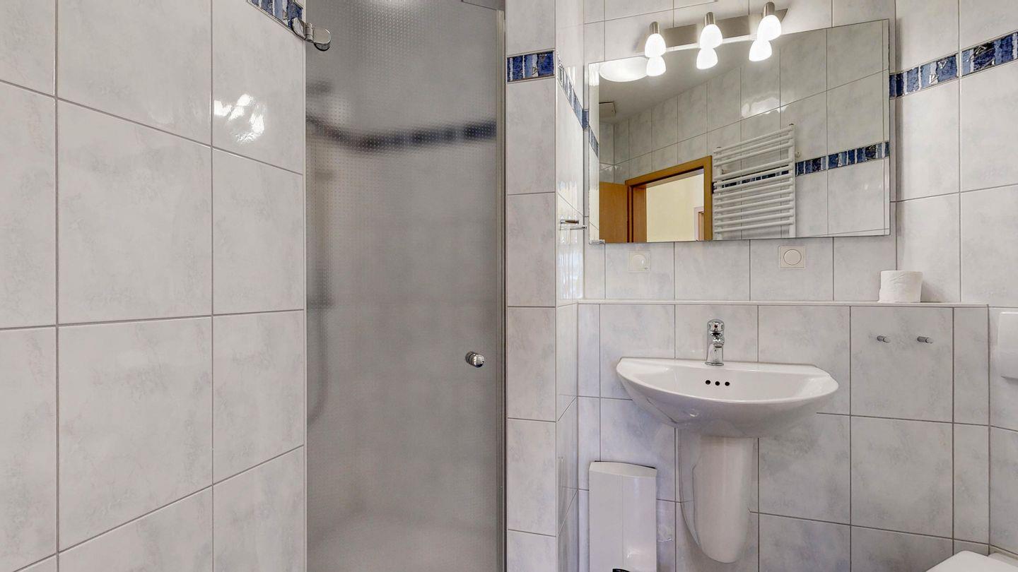 * 1 Badezimmer mit Dusche, WC und Föhn