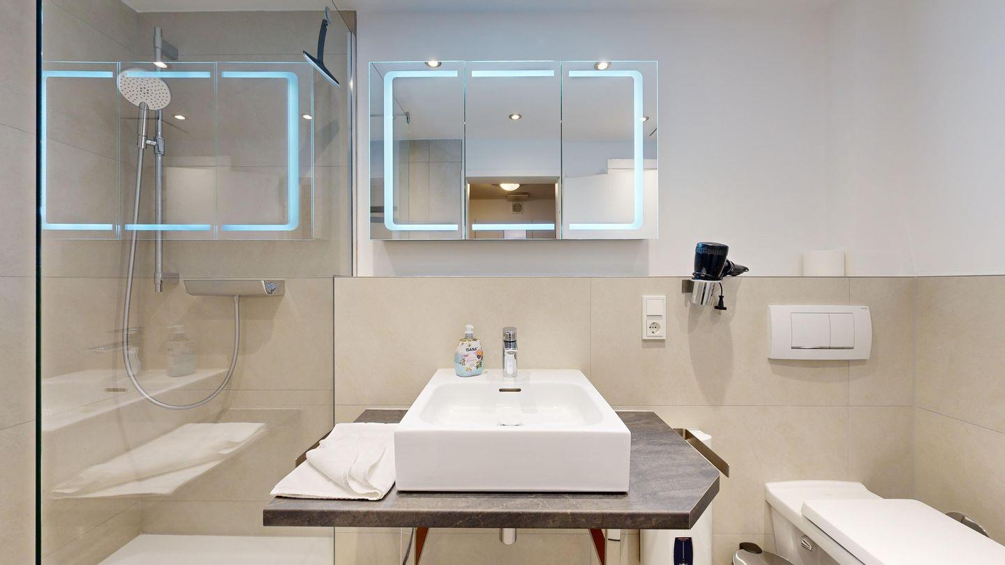* 1 Badezimmer mit Dusche, WC und Föhn