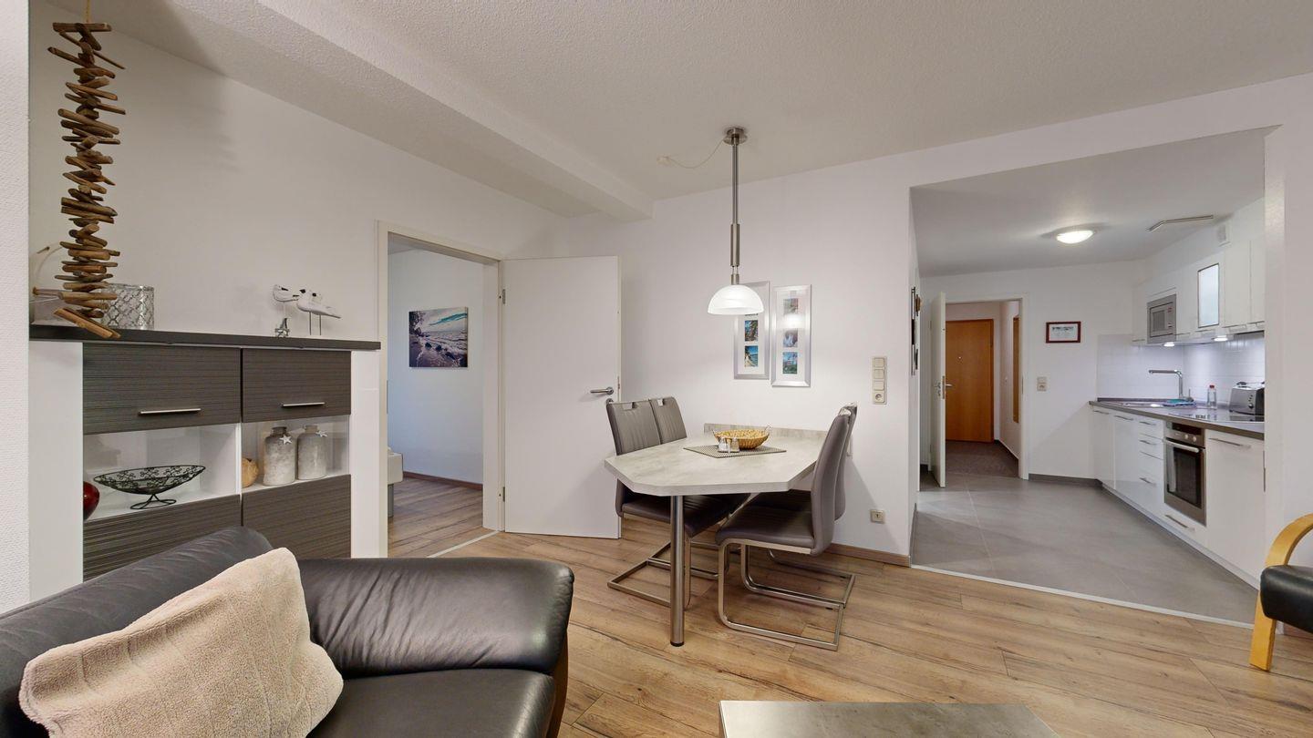Nur einen Steinwurf vom Strand entfernt: Genießen Sie sonnige Stunden auf dem Südbalkon, entspannen Sie im eigenen Strandkorb und freuen Sie sich auf ein modernes Bad und zwei komfortable Schlafzimmer.