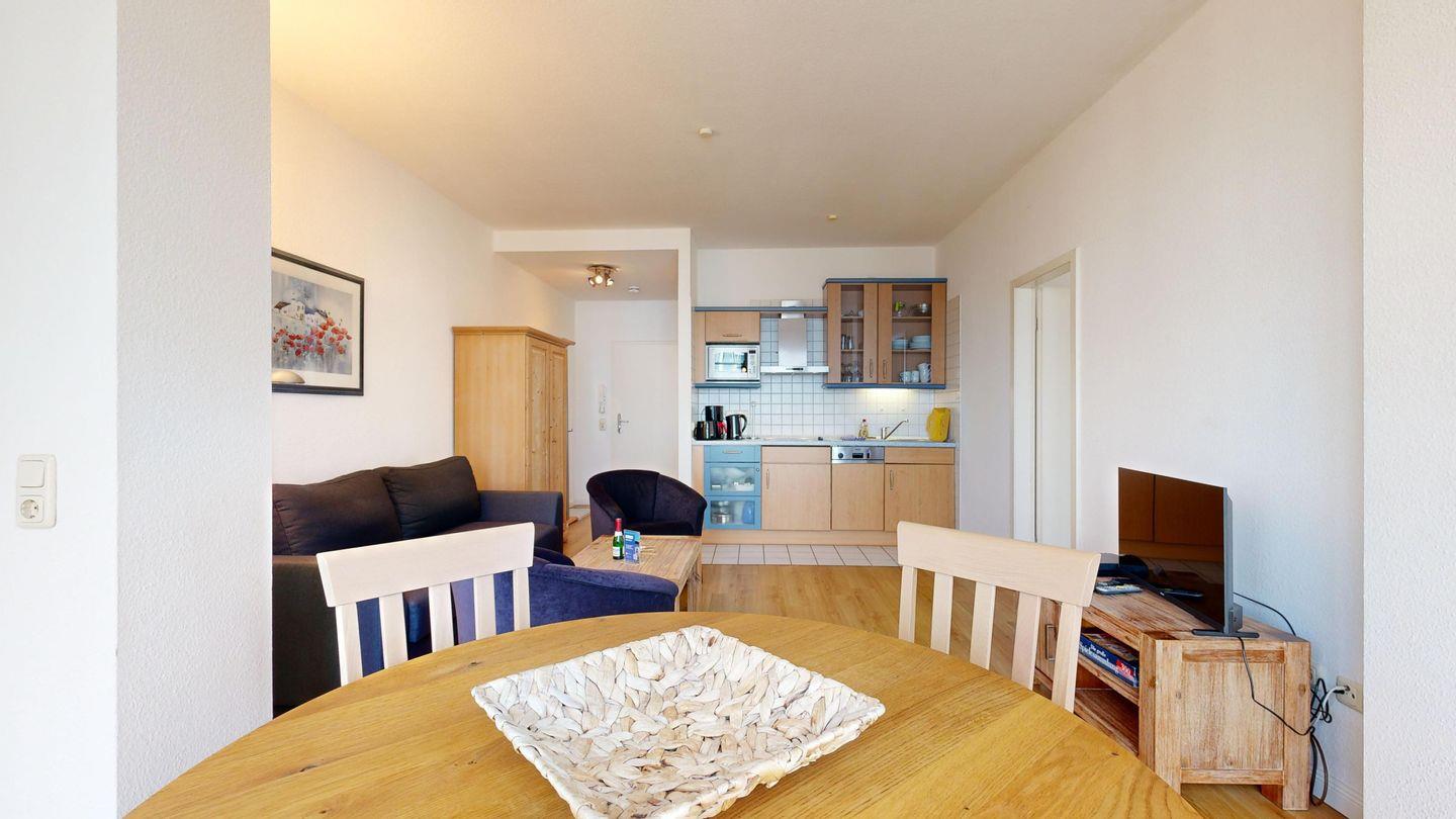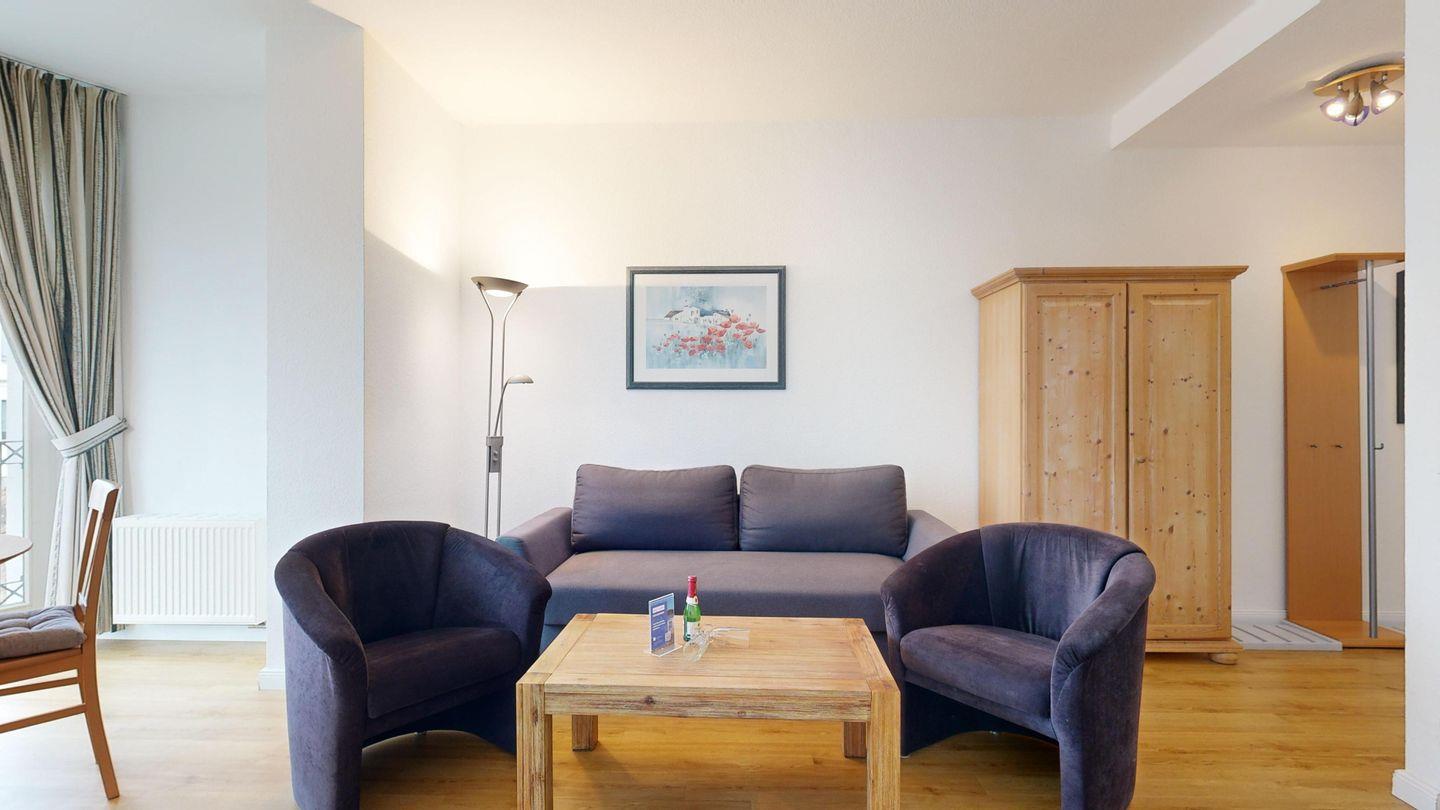 * Wohnzimmer: Couchgarnitur (Schlafgelegenheit für 2 Pers.), Kabel-TV, Radio mit CD, Essplatz, WLAN-Internetanschluss