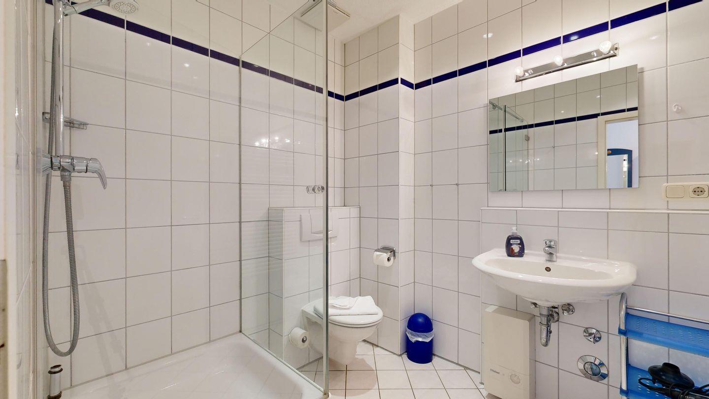 * 1 Badezimmer mit Dusche, WC und Föhn