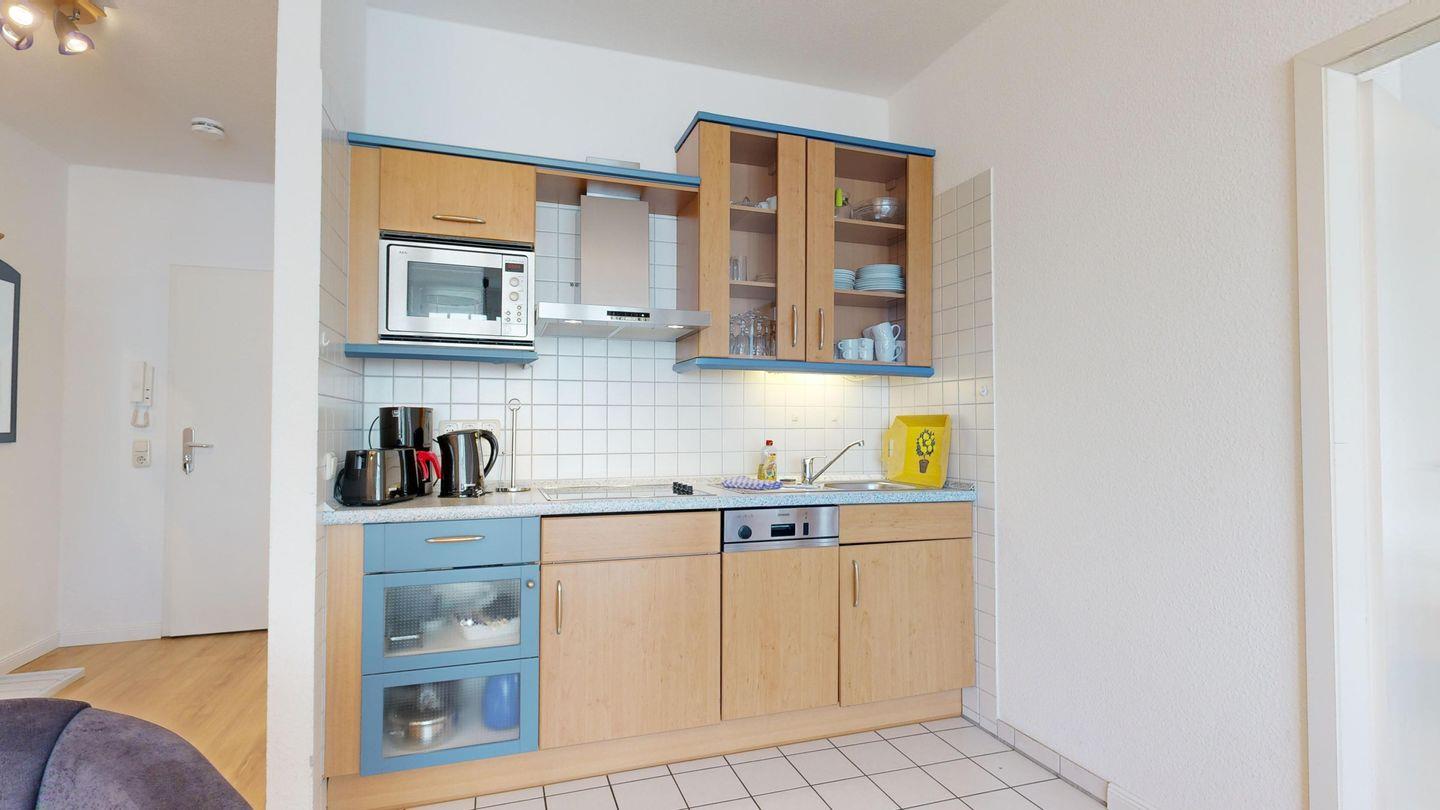 * Küche: Moderne Küchenzeile E-Herd, Spülmaschine, Grill-Mikrowelle, Wasserkocher, Kaffeemaschine und Toaster