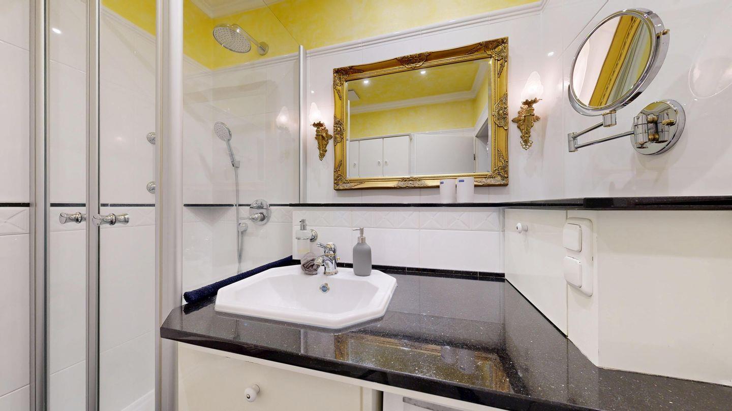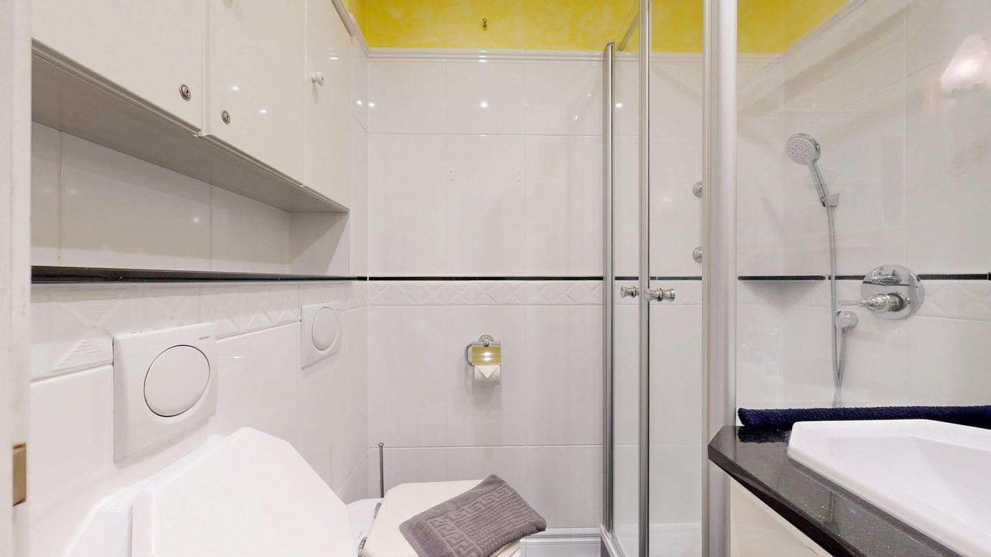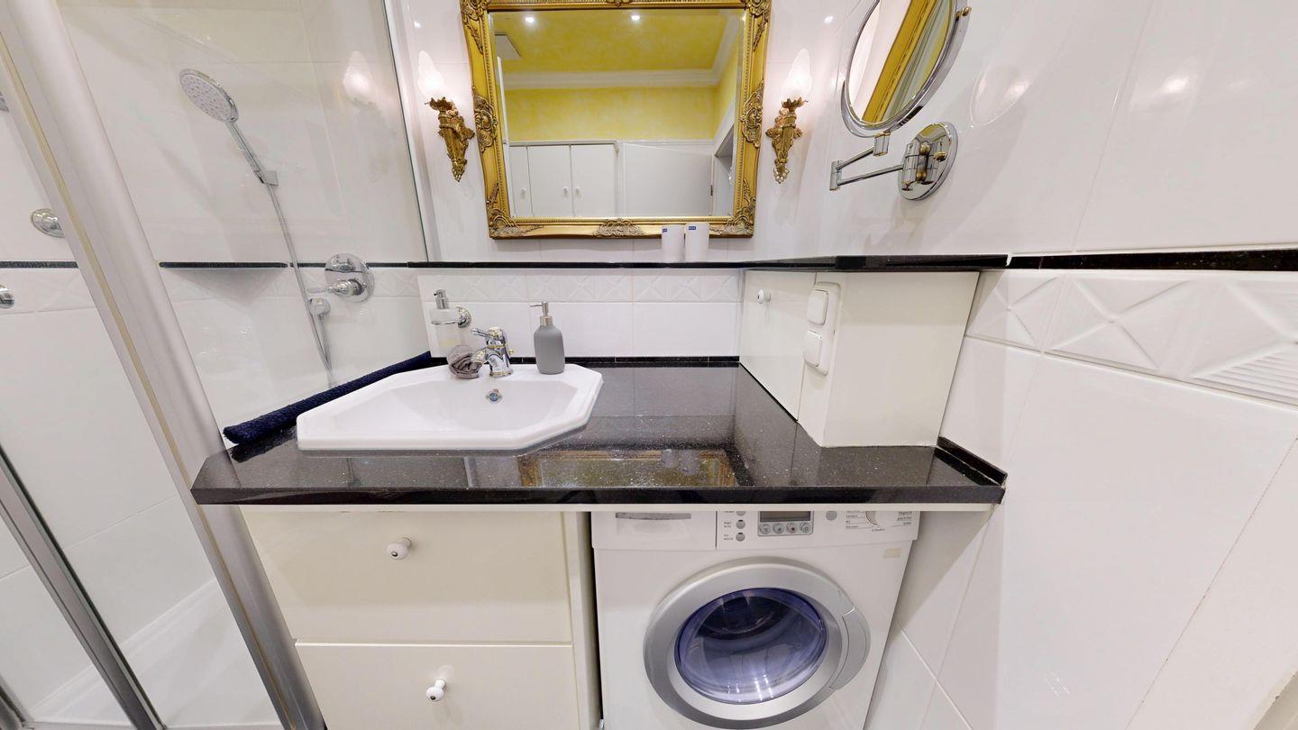 * Badezimmer mit Dusche, WC, BD, Föhn und Waschmaschine