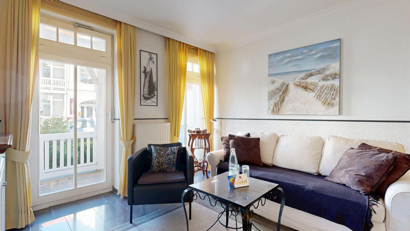 * Wohnzimmer mit gemütlicher Couch (Schlafgelegenheit für 2 Personen), Kabel-TV, WLAN-Internetanschluss und Balkon