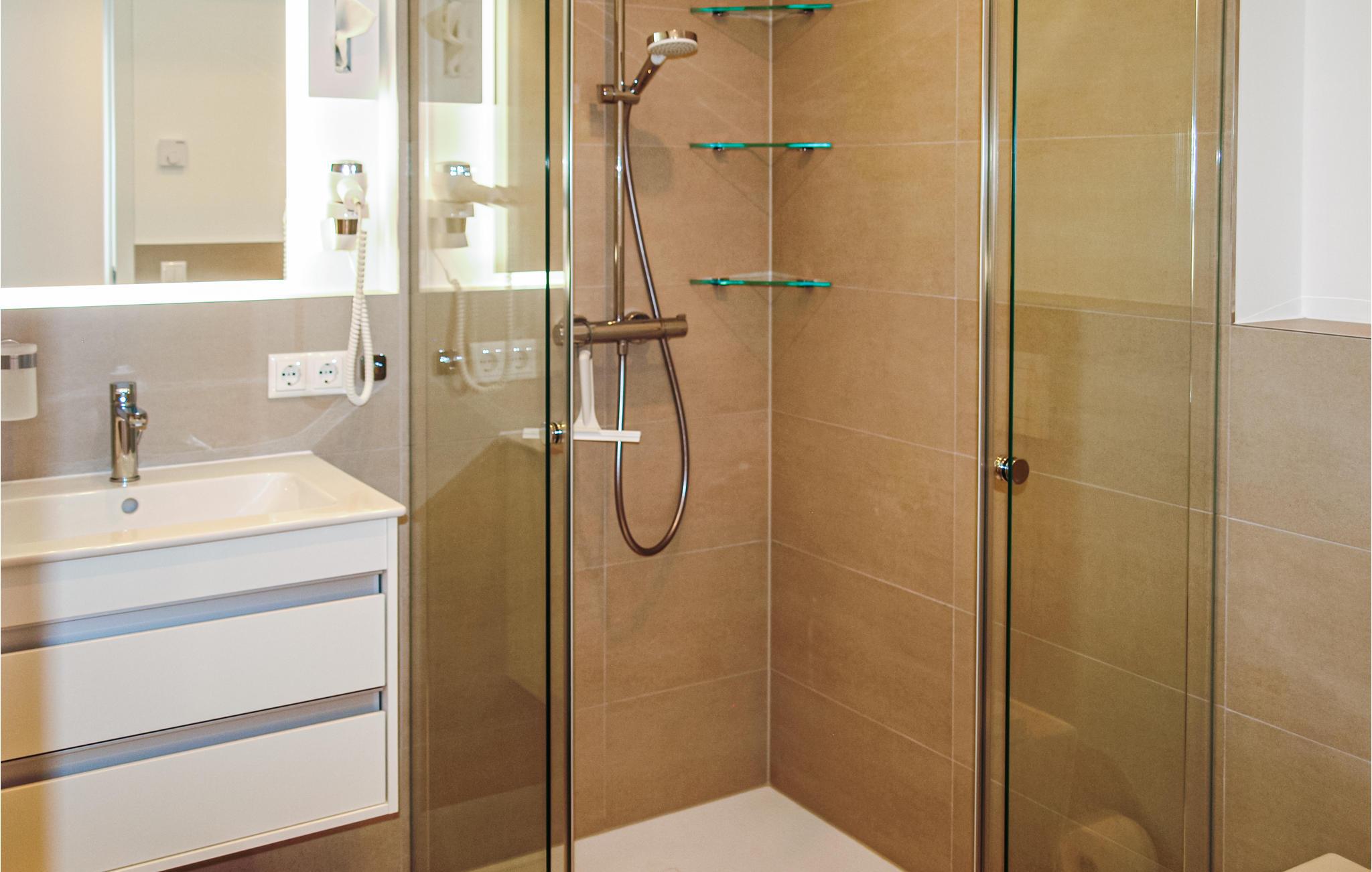 - WC mit warmem und kaltem Wasser, Dusche und Badewanne