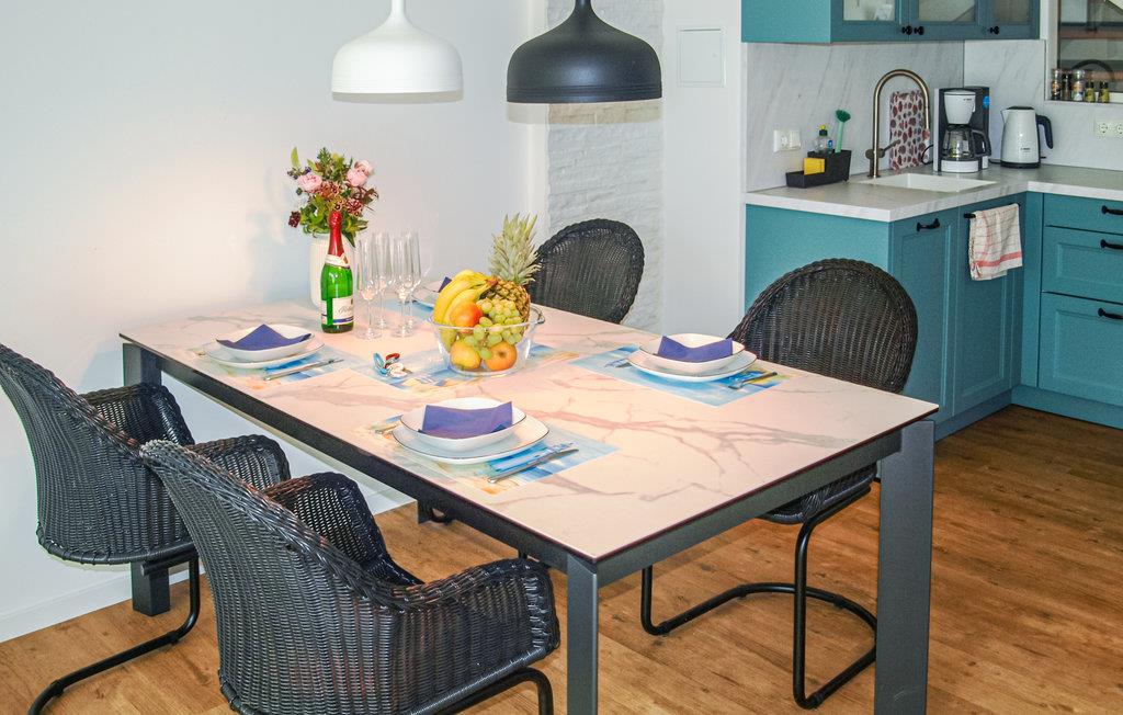 Die Ferienwohnung "Fischerkoje" befindet sich in einer sogenannten Liegehalle mit Panoramafenstern, einem seperaten Eingang und wurde als Maisonette Wohnung über 3 Ebenen konzipiert. In ihrer hellen, angenehmen Atmosphäre lässt es sich gut gehen. Planen Sie im Wohnzimmer den Tag in aller Ruhe und verbringen Sie hier gesellige Stunden beim Abendessen.