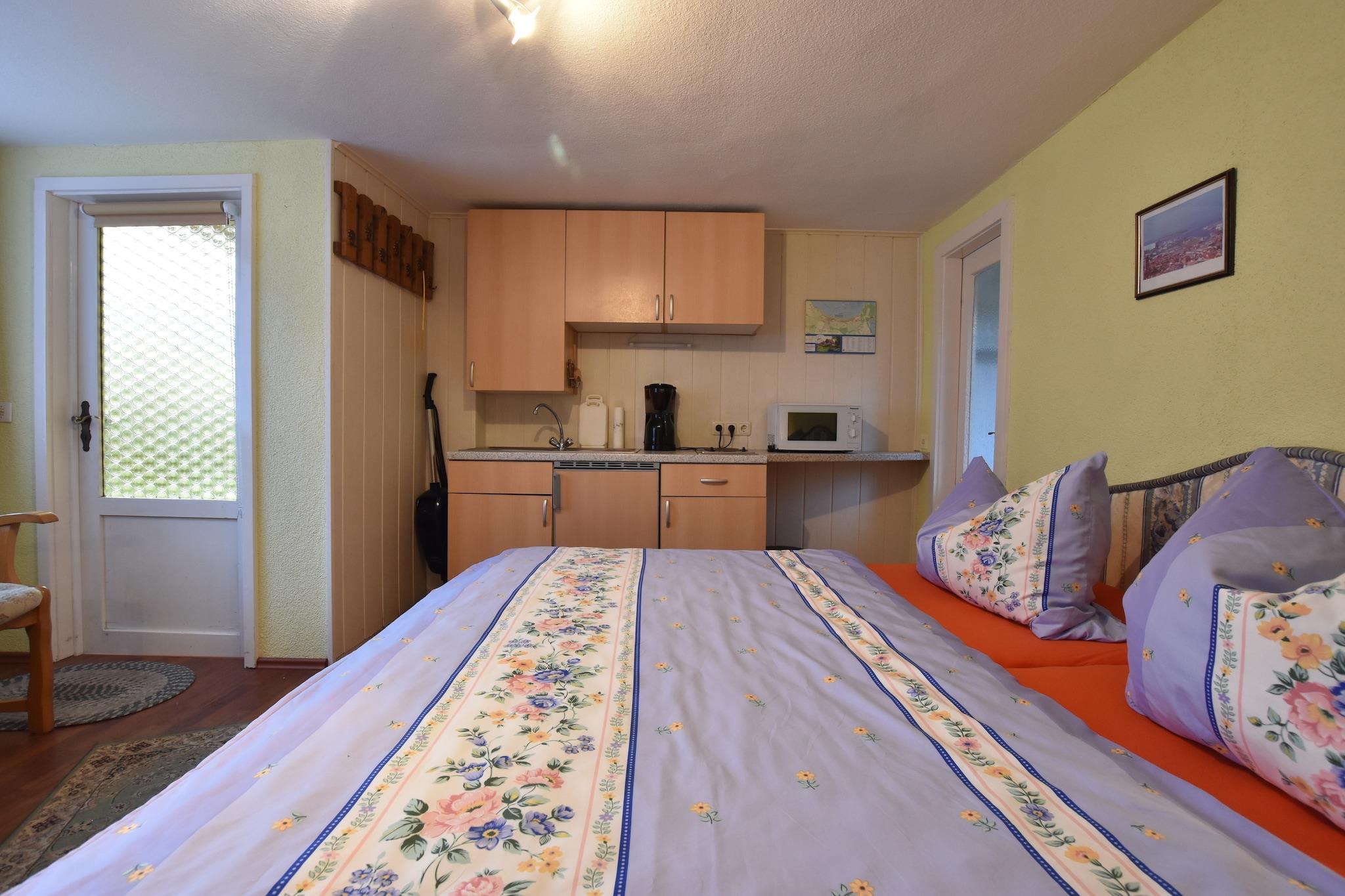 Parterre: (offene Küche(Wasserkocher, Toaster, Kochherd(2 Kochplatten), Kaffeemaschine, Mikrowelle, Kühlschrank(+ Gefrierfach)), Wohn-/Schlafzimmer(Doppelbett, TV(Flatscreen), Sitzecke, Radio), Badezimmer(Dusche, Waschbecken, Toilette), Heizung) Terrasse, Garten(Gemeinschaftliche Nutzung mit dem Eigentümer und anderen Gästen ), Fahrradabstellraum, Gartenmöbel, Grill, Parkplatz