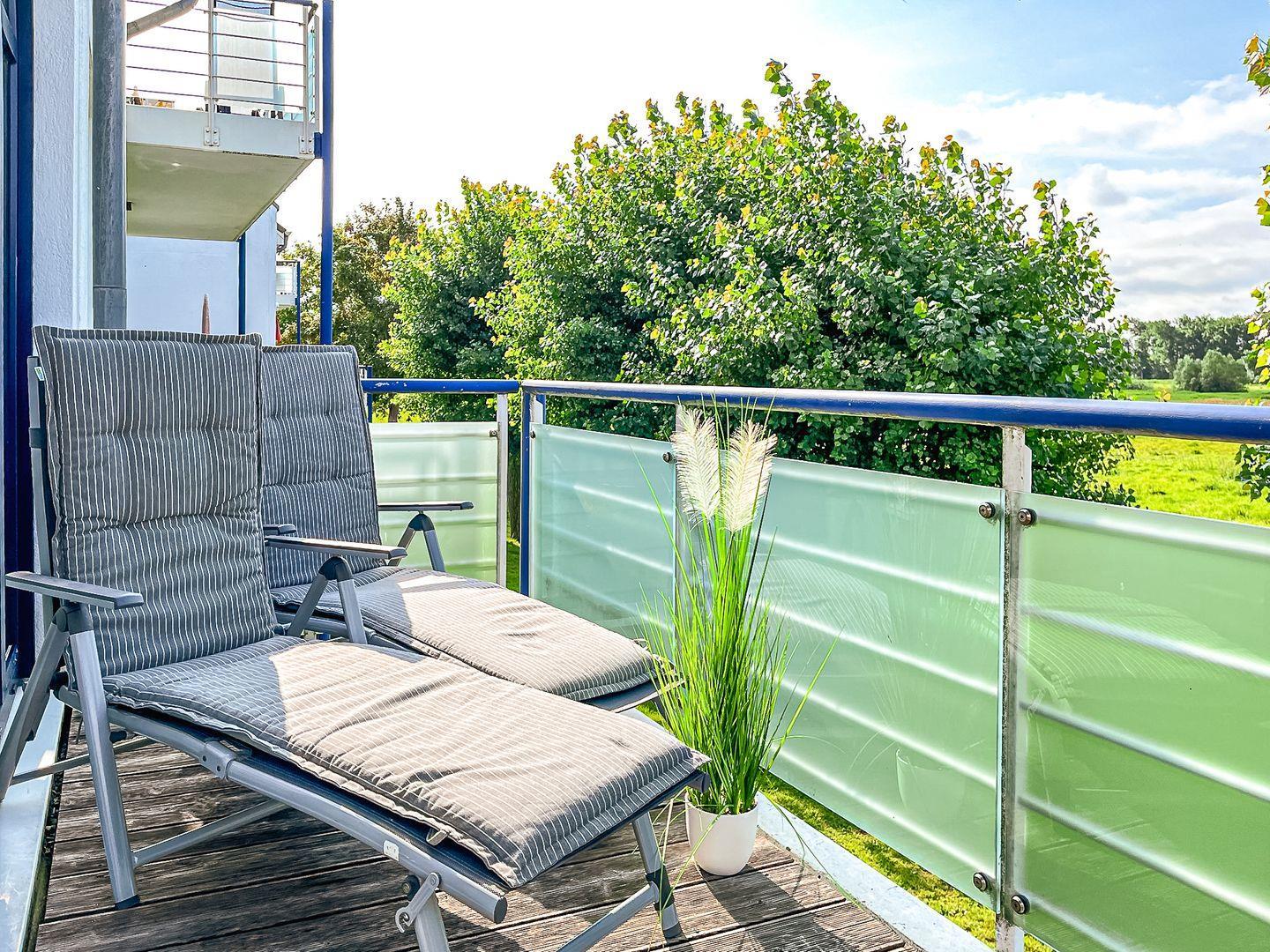 Moderne 2-Zimmer-Ferienwohnung mit Balkon und Haffblick nahe Strand in Boltenhagen.