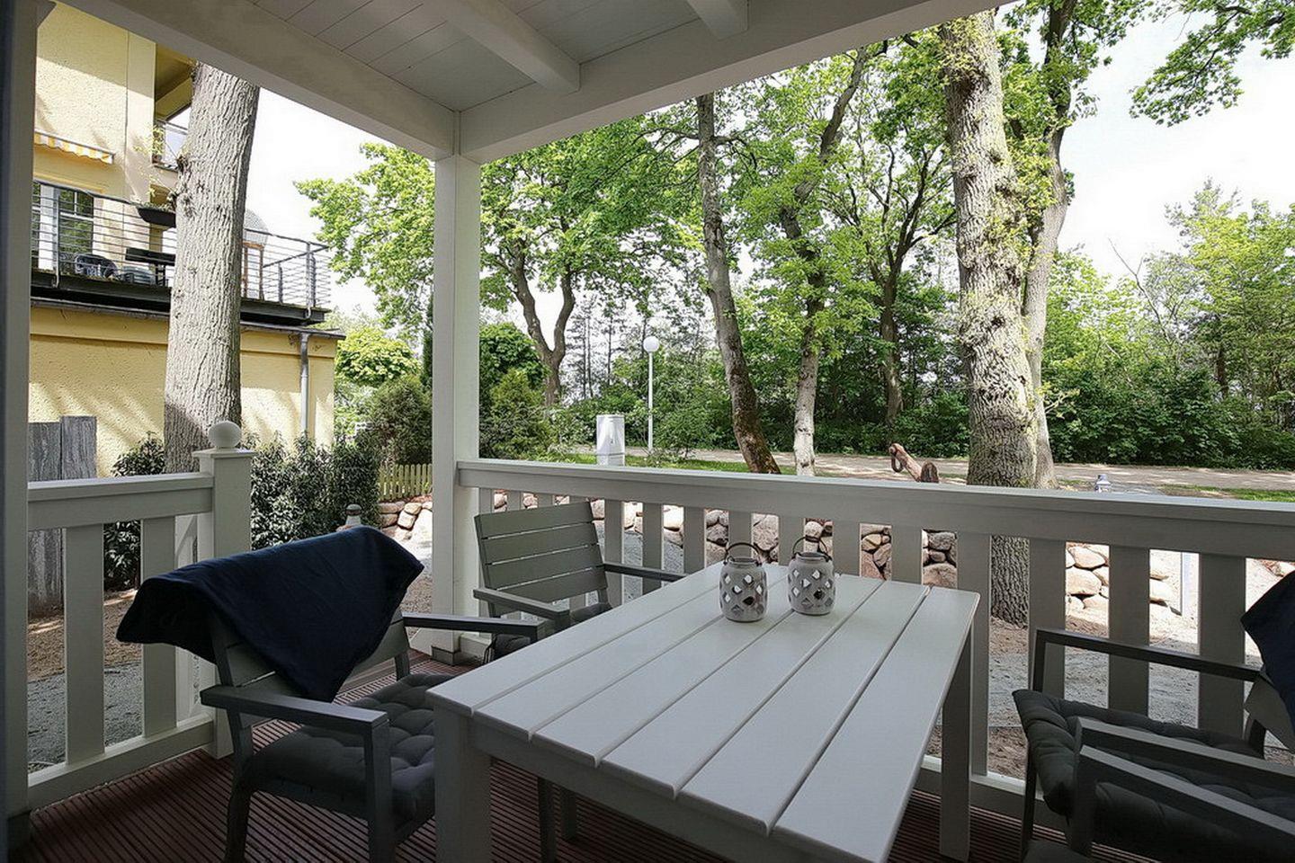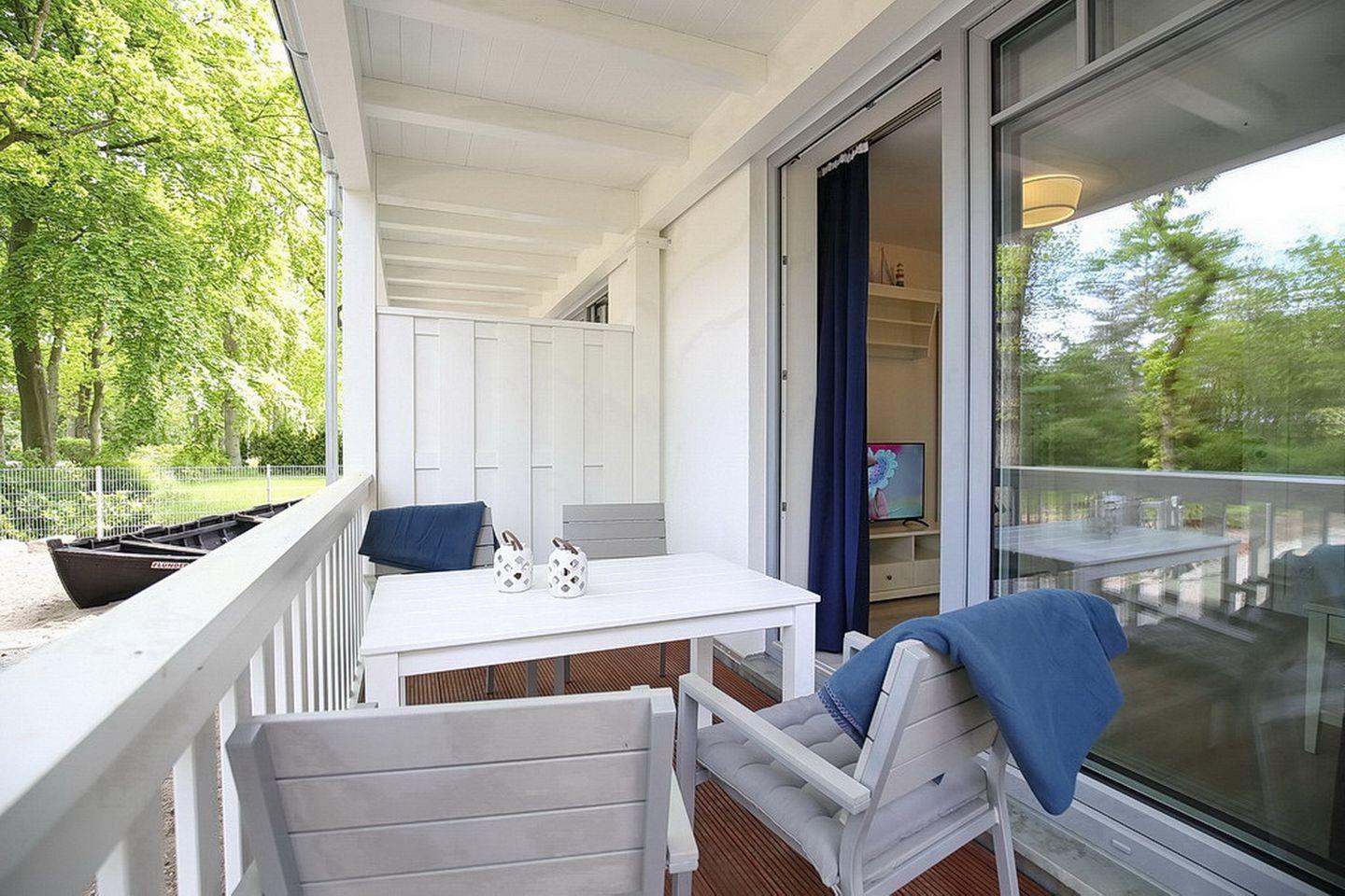 Die 2-Zimmer-Wohnung Strandvilla Scholle in Boltenhagen besticht durch Strandnähe, zwei Balkone und maritimes Flair auf 70 m².