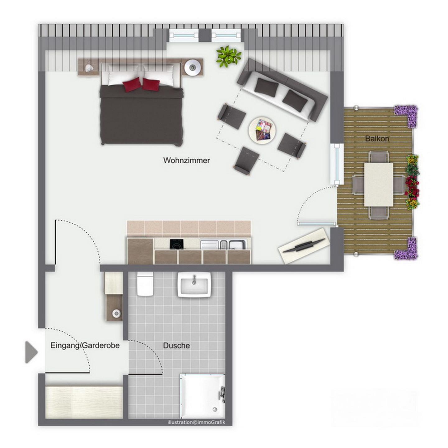 Strandnahe 1-Zimmer-Wohnung mit Balkon