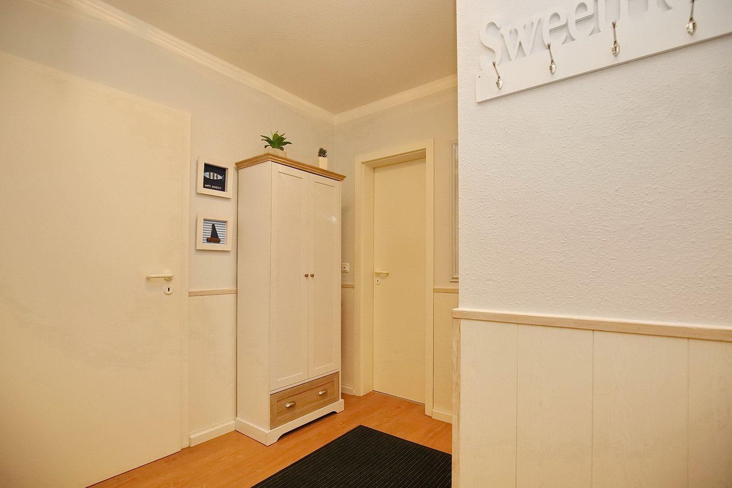 Auf ca. 65 m² kannst du in diesem 3-Zi-Appartment deinen Urlaub genießen. Die Wohnung mit Terrasse in Süd-Ost Lage findest du im Erdgeschoss. Dich erwartet ein Wohn- und Essbereich, eine separate Küche, zwei Schlafzimmer und ein Duschbad. Die Entfernung zum Strand von der Ferienanlage Sünnslag beträgt ca. 400 m.