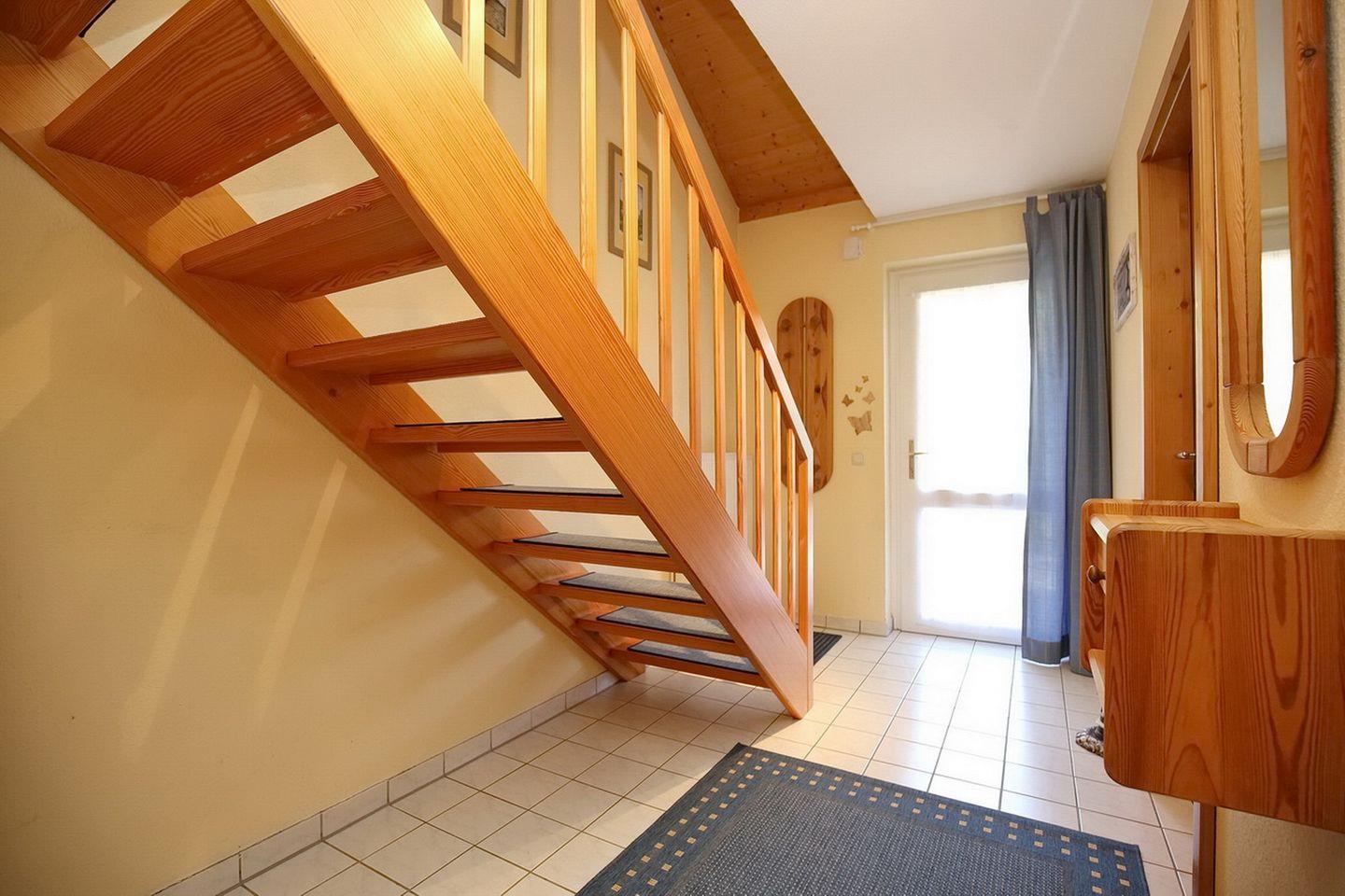 Das Ferienhaus Url/46a verläuft über zwei Ebenen und hat eine Größe von ca. 63 m². Du nutzt hier ein Wohnzimmer mit Küchenzeile, zwei Schlafzimmer, ein Duschbad, ein Gäste-WC im zweiten Obergeschoss und eine möblierte Süd-Ost-Terrasse. Zum Strand sind es ca. 350 m.