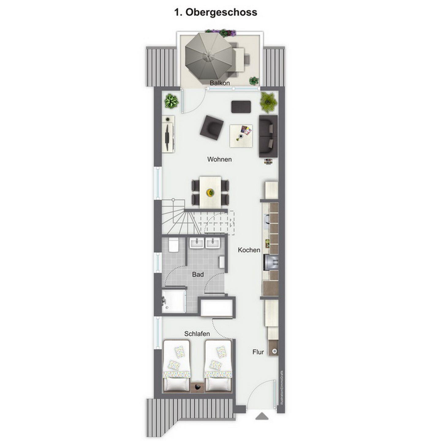 Auf ca. 68 m² bewohnst du im 1. OG des Hauses 14 die Ferienwohnung. Zu der über zwei Etagen verlaufenden 4- Zi.-Wohnung gehört ein Balkon, der nach Süd-Ost ausgerichtet ist. Du bewohnst drei Schlafzimmer, einen Wohn- und Essbereich, ein Duschbad und eine Küchenzeile. Die Entfernung zum Strand beträgt ca. 250 m.